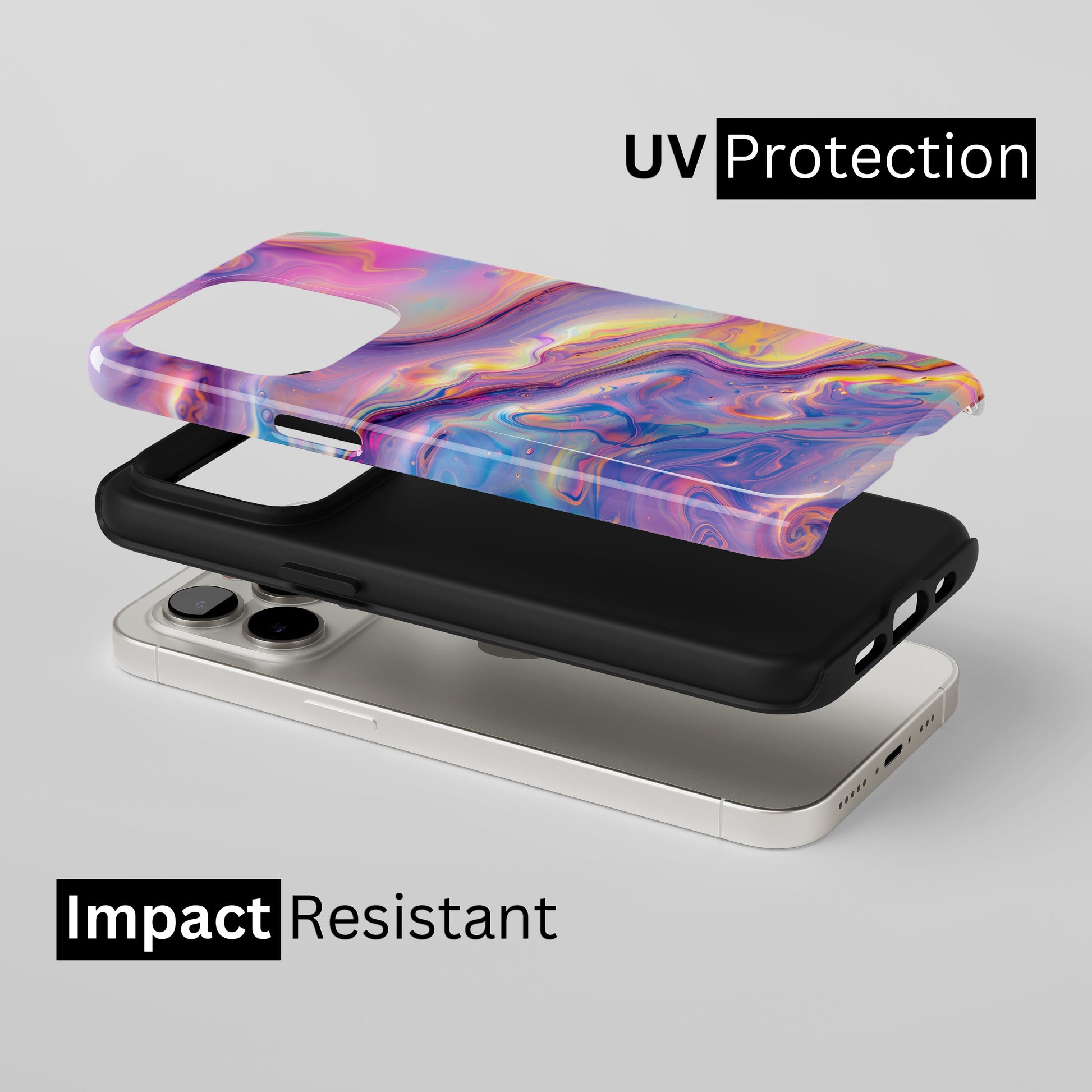 Protect your phone with a dual-layer case made for and compatible with Samsung Galaxy/Note devices. Durable, shock-absorbing, UV-protected, and wireless charging compatible. Choose matte or glossy with full-wrap 3D print and clear, open ports for easy access.