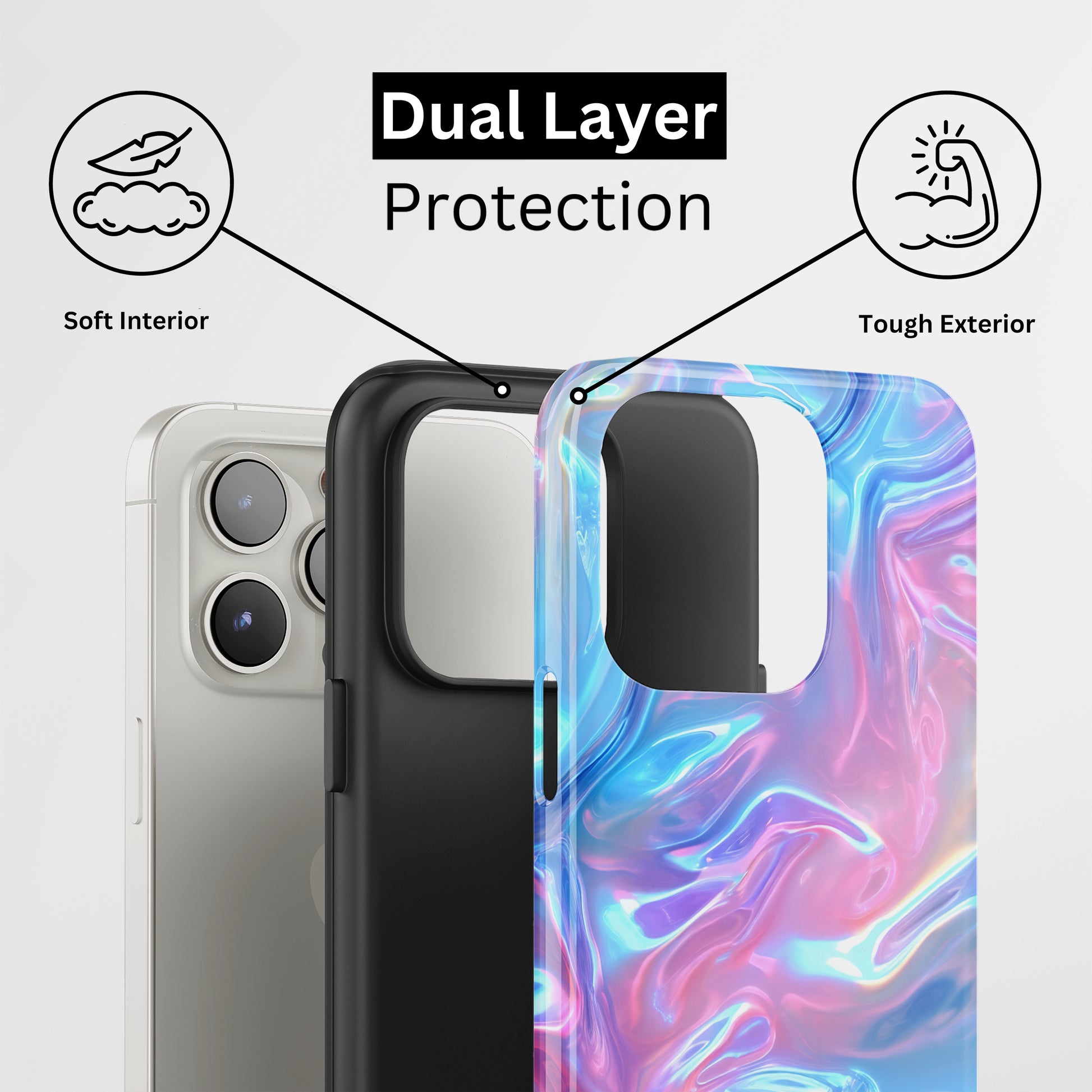 Protect your phone with a dual-layer case made for and compatible with iPhone devices. Durable, shock-absorbing, UV-protected, and wireless charging compatible. Choose matte or glossy with full-wrap 3D print and clear, open ports for easy access.