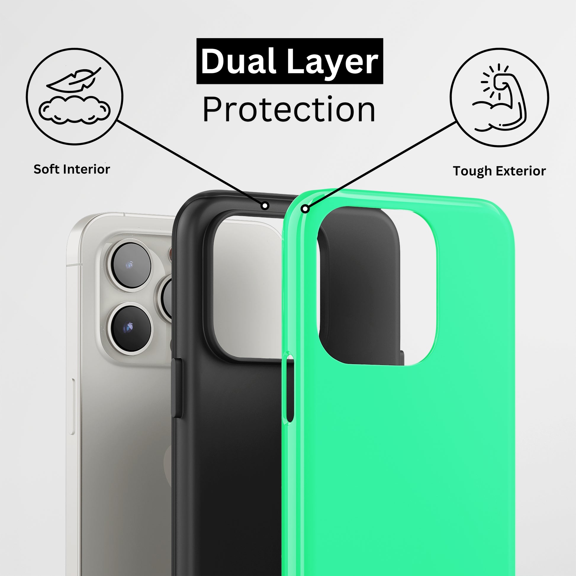 Protect your phone with a dual-layer case made for and compatible with iPhone devices. Durable, shock-absorbing, UV-protected, and wireless charging compatible. Choose matte or glossy with full-wrap 3D print and clear, open ports for easy access.