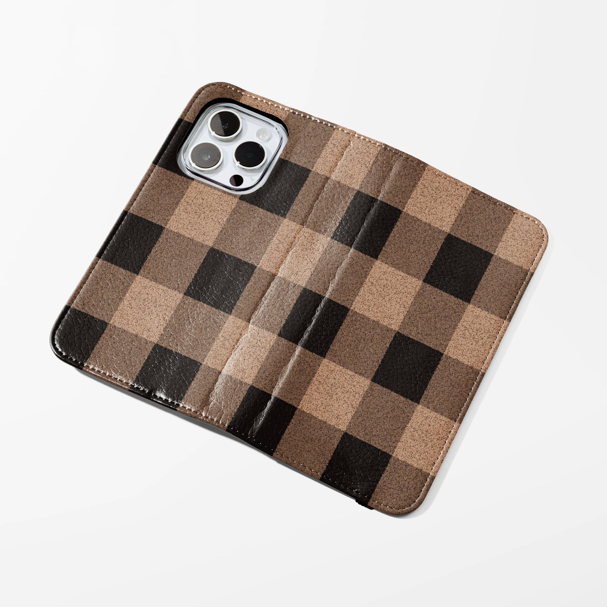 Kick your phone’s style up a notch with our vegan leather folio case! It’s got bold designs, a tough polycarbonate core, and a stretchy strap to keep it snug. Stash cards and cash, pop it up for videos, and clip on a strap for easy carrying!