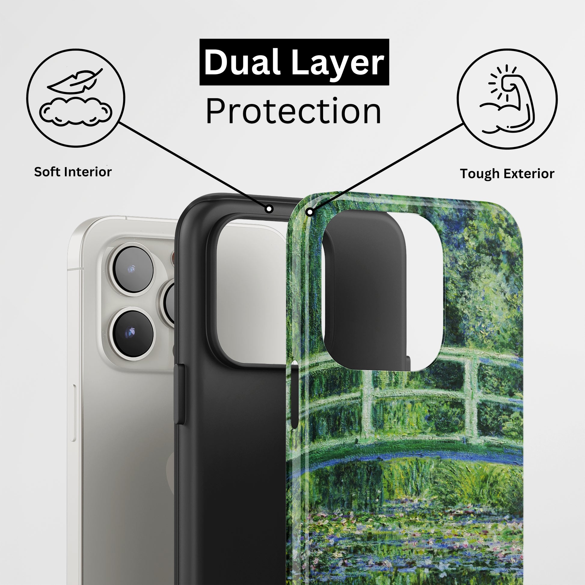 Protect your phone with a dual-layer case made for and compatible with iPhone devices. Durable, shock-absorbing, UV-protected, and wireless charging compatible. Choose matte or glossy with full-wrap 3D print and clear, open ports for easy access.