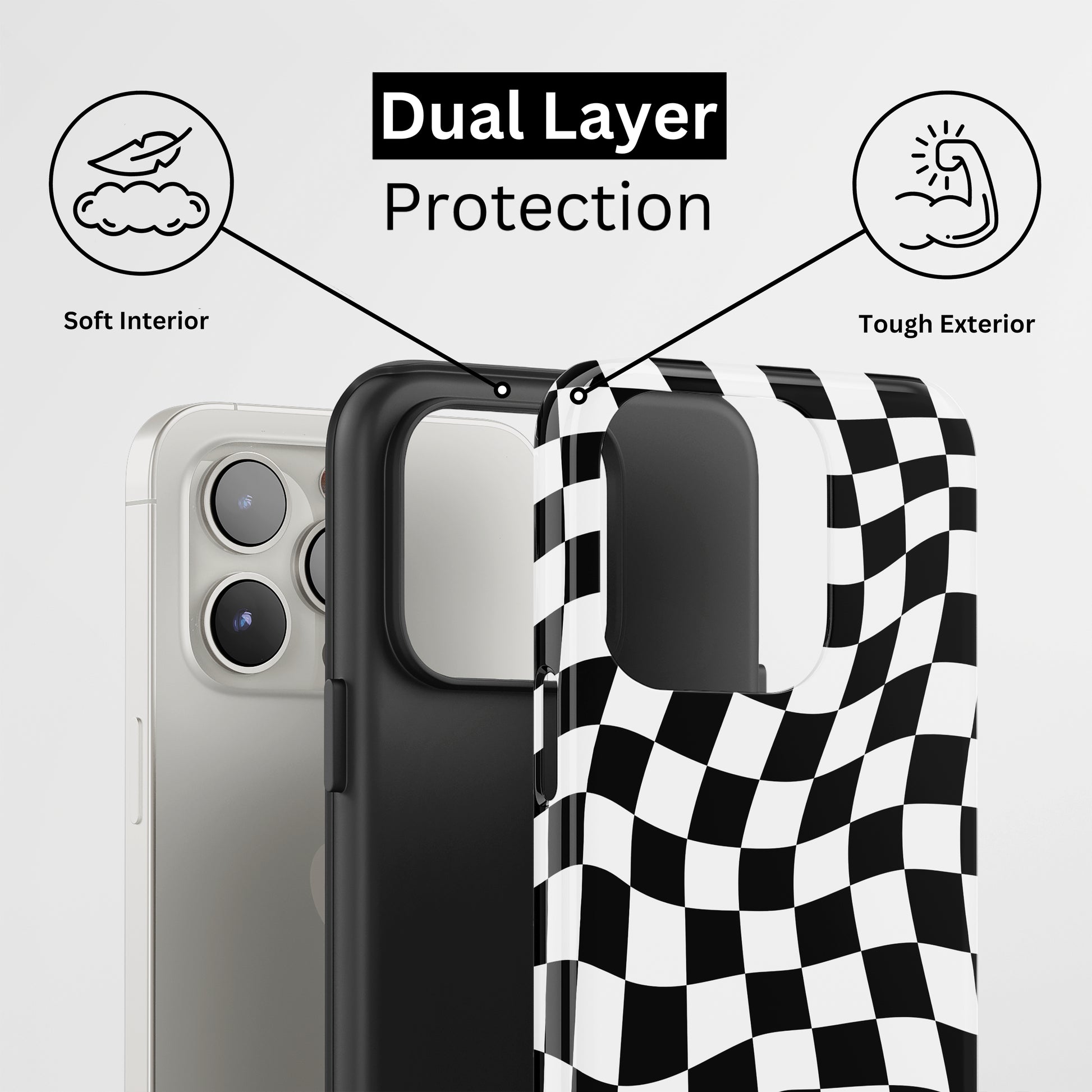Protect your phone with a dual-layer case made for and compatible with iPhone devices. Durable, shock-absorbing, UV-protected, and wireless charging compatible. Choose matte or glossy with full-wrap 3D print and clear, open ports for easy access.