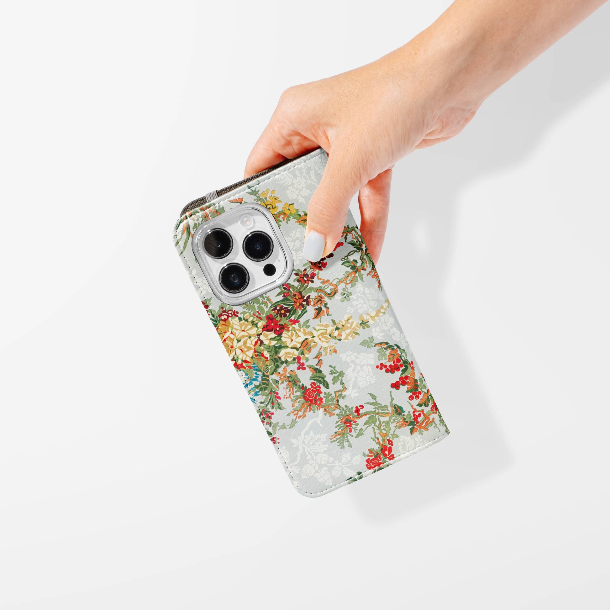 Kick your phone’s style up a notch with our vegan leather folio case! It’s got bold designs, a tough polycarbonate core, and a stretchy strap to keep it snug. Stash cards and cash, pop it up for videos, and clip on a strap for easy carrying!