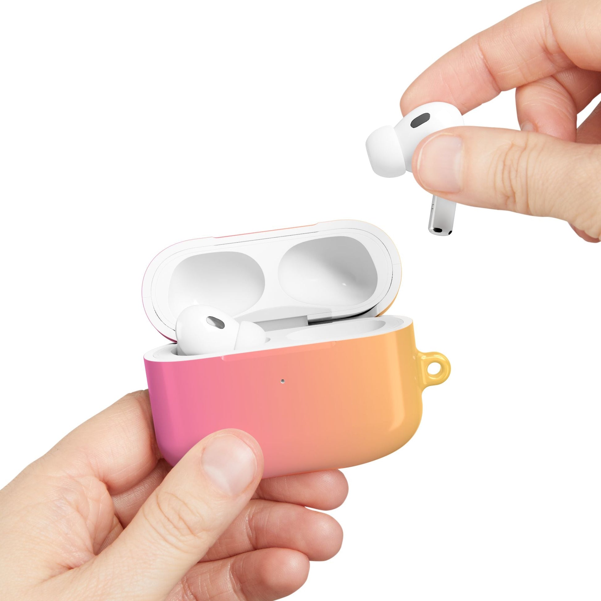 Transform and protect your AirPods with our sleek case, crafted from durable 100% polycarbonate for lasting protection. Designed to be compatible with AirPods and AirPods Pro, this case ensures easy access to charging ports and includes a handy carabiner for on-the-go convenience.