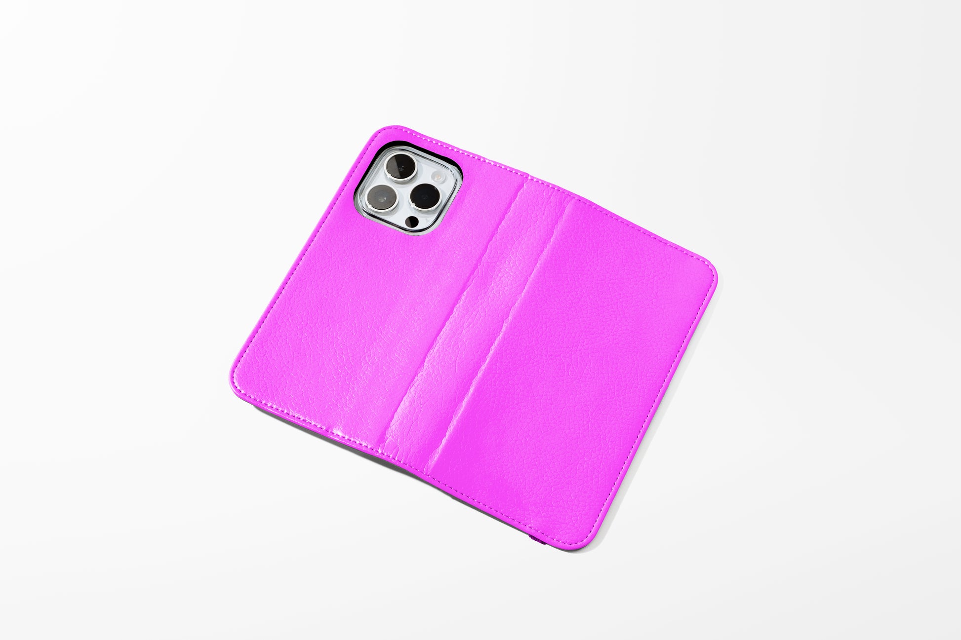 Kick your phone’s style up a notch with our vegan leather folio case! It’s got bold designs, a tough polycarbonate core, and a stretchy strap to keep it snug. Stash cards and cash, pop it up for videos, and clip on a strap for easy carrying!