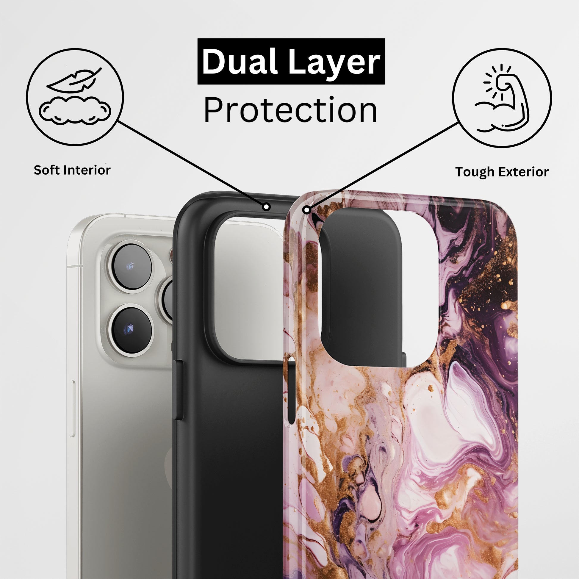 Protect your phone with a dual-layer case made for and compatible with iPhone devices. Durable, shock-absorbing, UV-protected, and wireless charging compatible. Choose matte or glossy with full-wrap 3D print and clear, open ports for easy access.