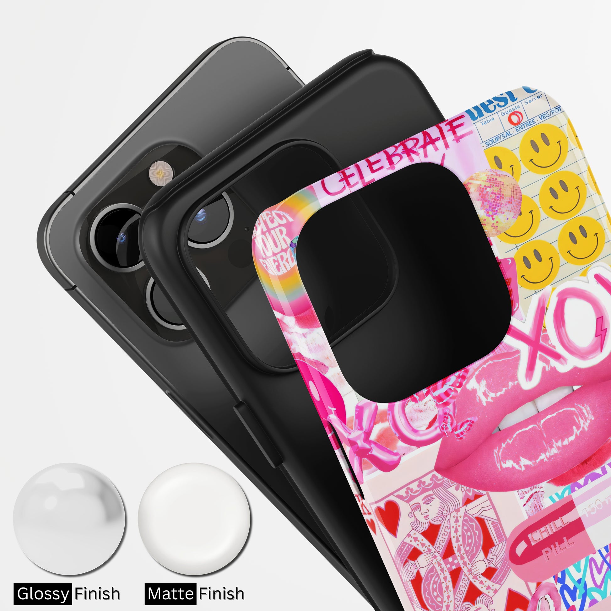 Protect your phone with a dual-layer case made for and compatible with iPhone devices. Durable, shock-absorbing, UV-protected, and wireless charging compatible. Choose matte or glossy with full-wrap 3D print and clear, open ports for easy access.