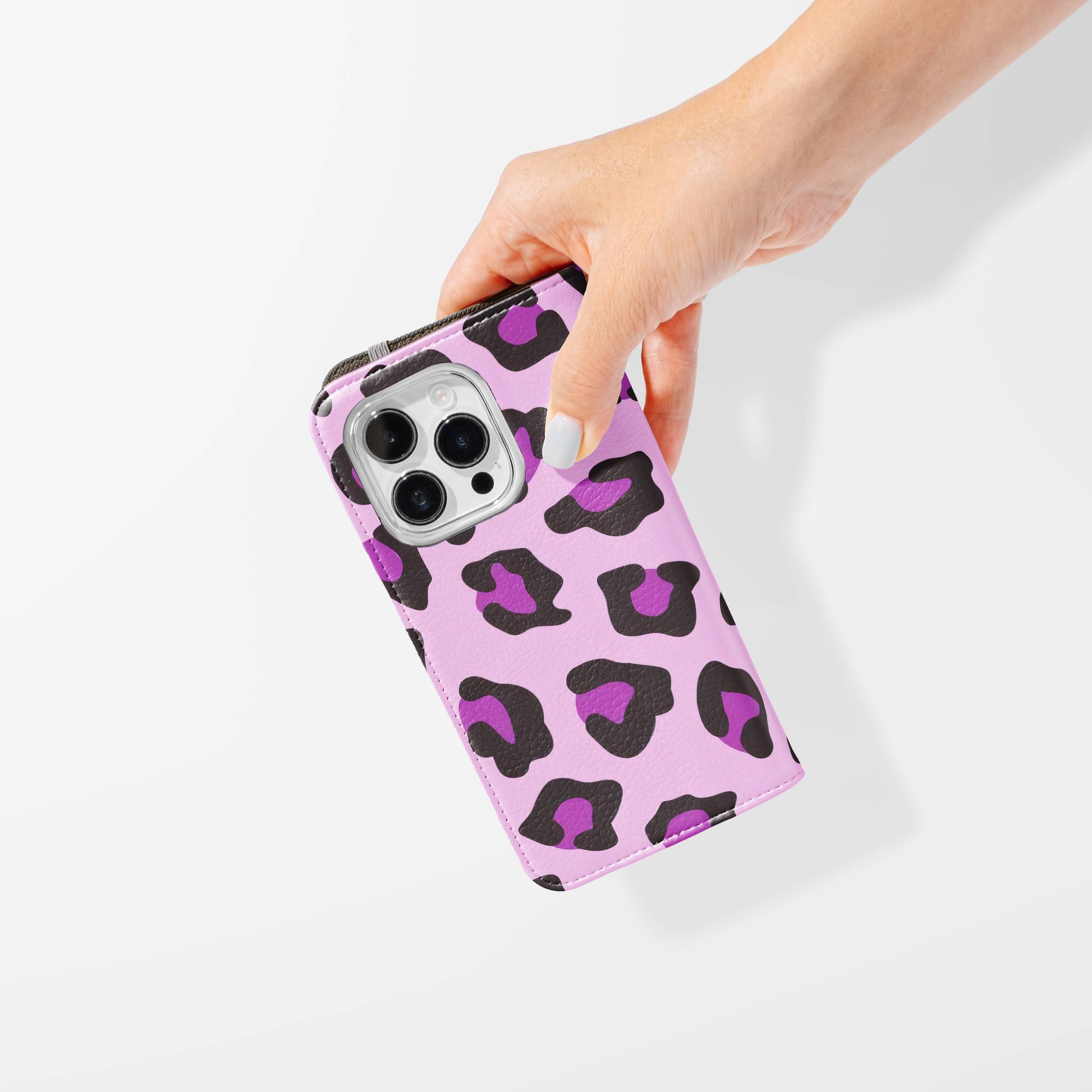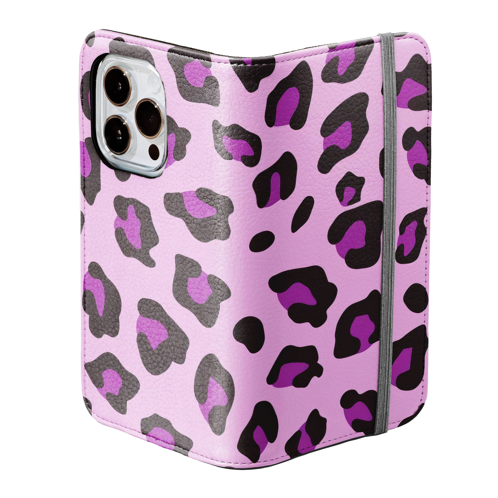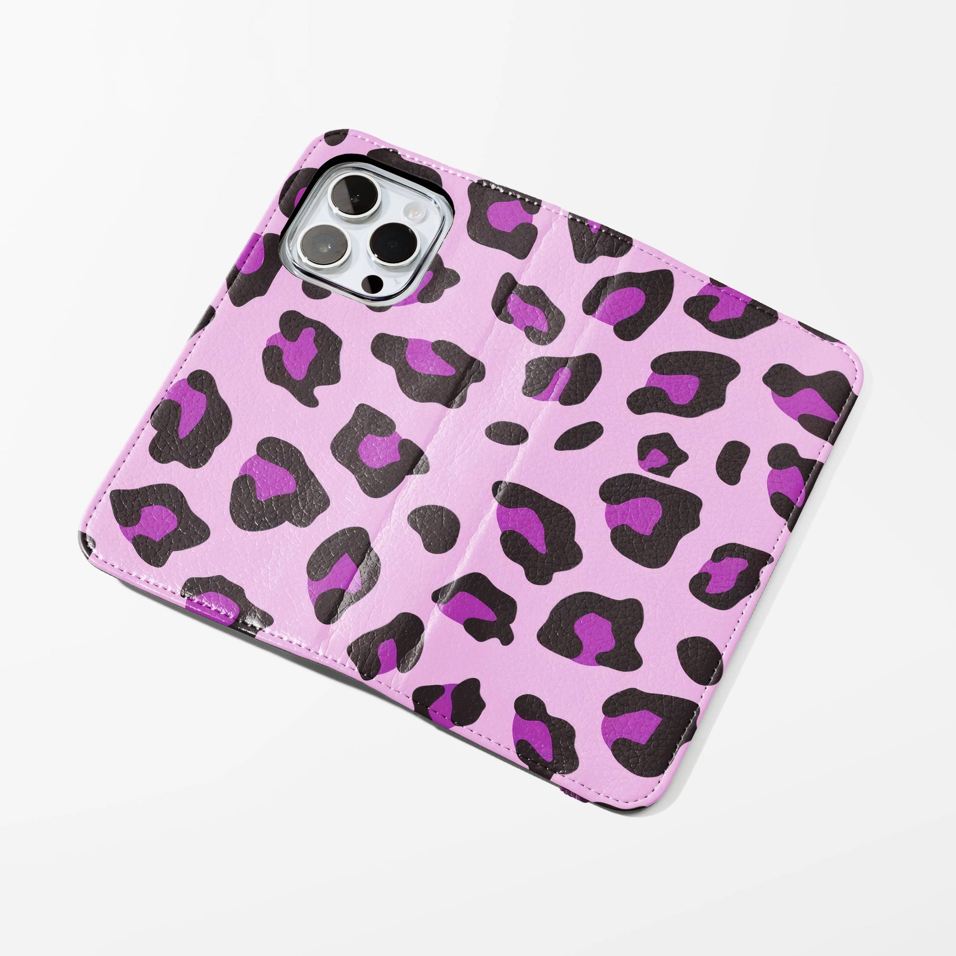 Kick your phone’s style up a notch with our vegan leather folio case! It’s got bold designs, a tough polycarbonate core, and a stretchy strap to keep it snug. Stash cards and cash, pop it up for videos, and clip on a strap for easy carrying!