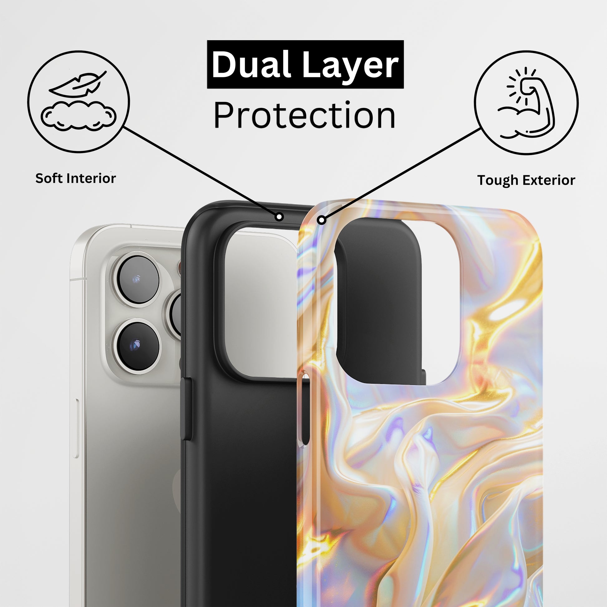 Protect your phone with a dual-layer case made for and compatible with iPhone devices. Durable, shock-absorbing, UV-protected, and wireless charging compatible. Choose matte or glossy with full-wrap 3D print and clear, open ports for easy access.