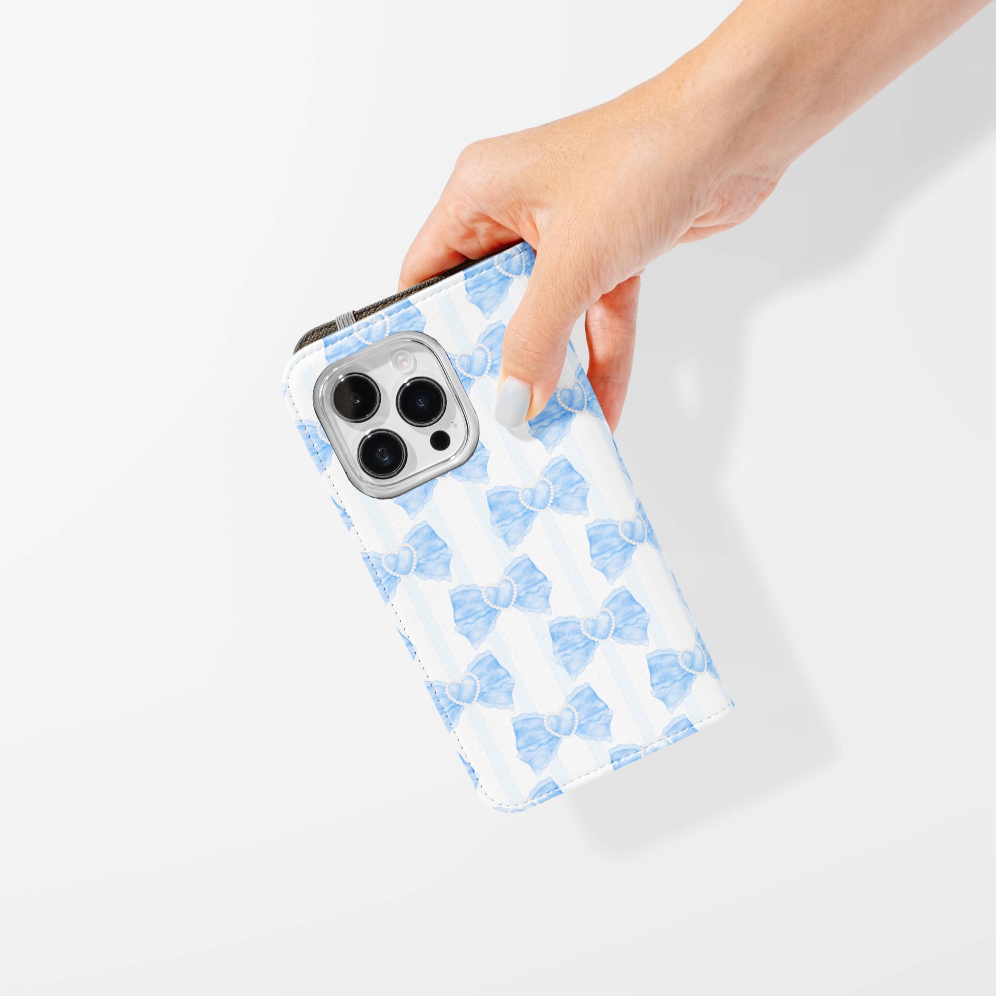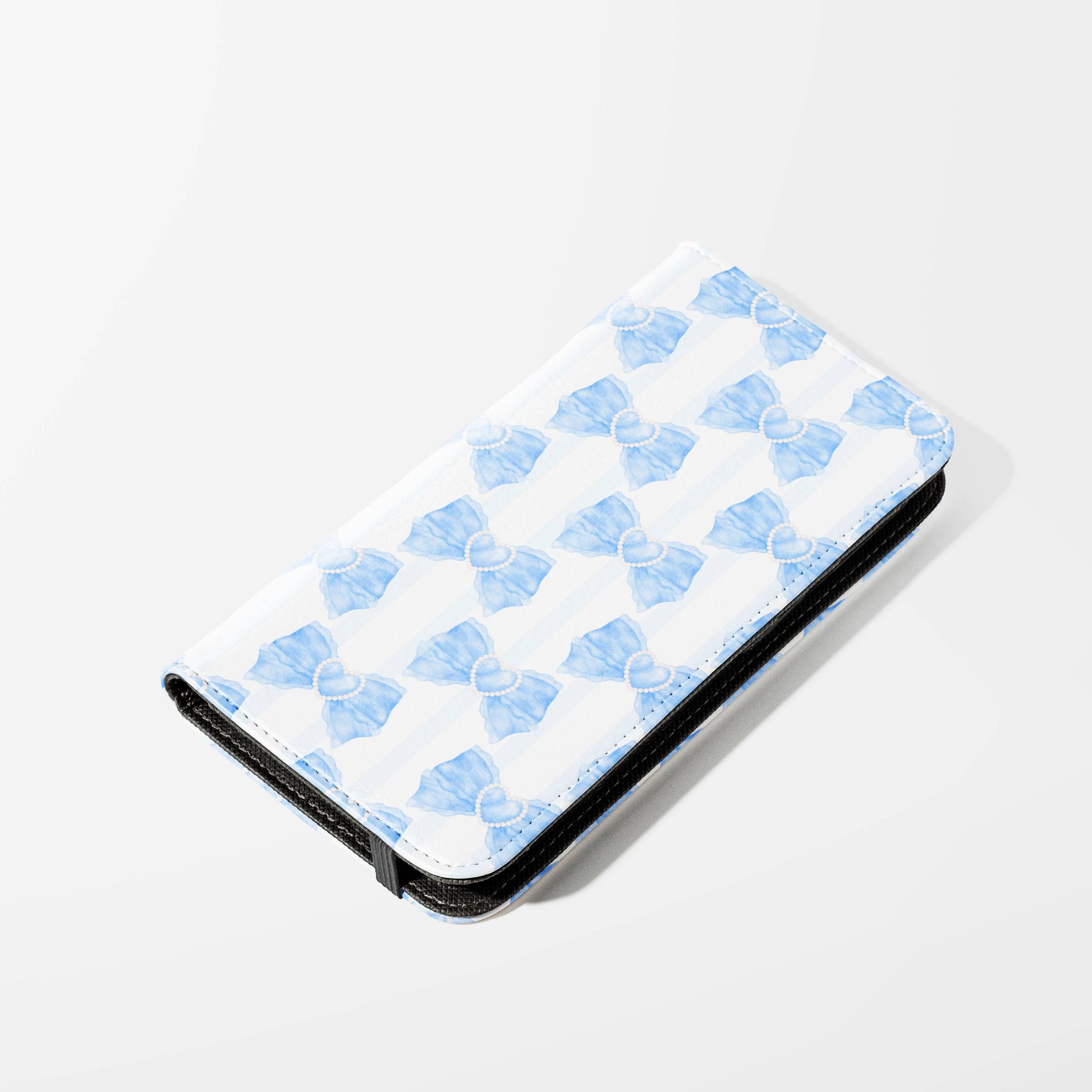 Kick your phone’s style up a notch with our vegan leather folio case! It’s got bold designs, a tough polycarbonate core, and a stretchy strap to keep it snug. Stash cards and cash, pop it up for videos, and clip on a strap for easy carrying!