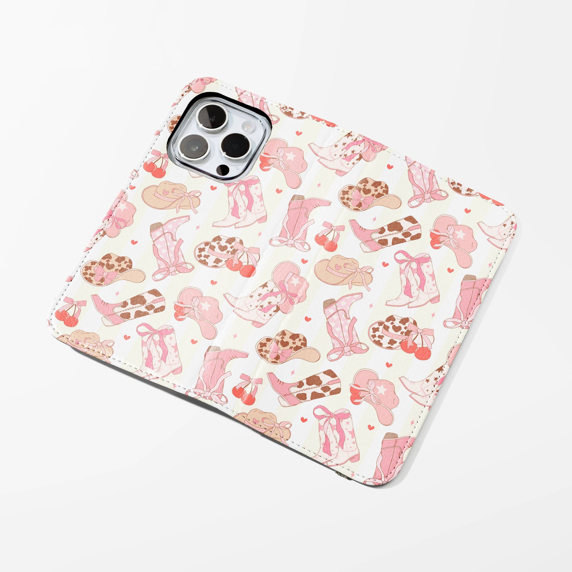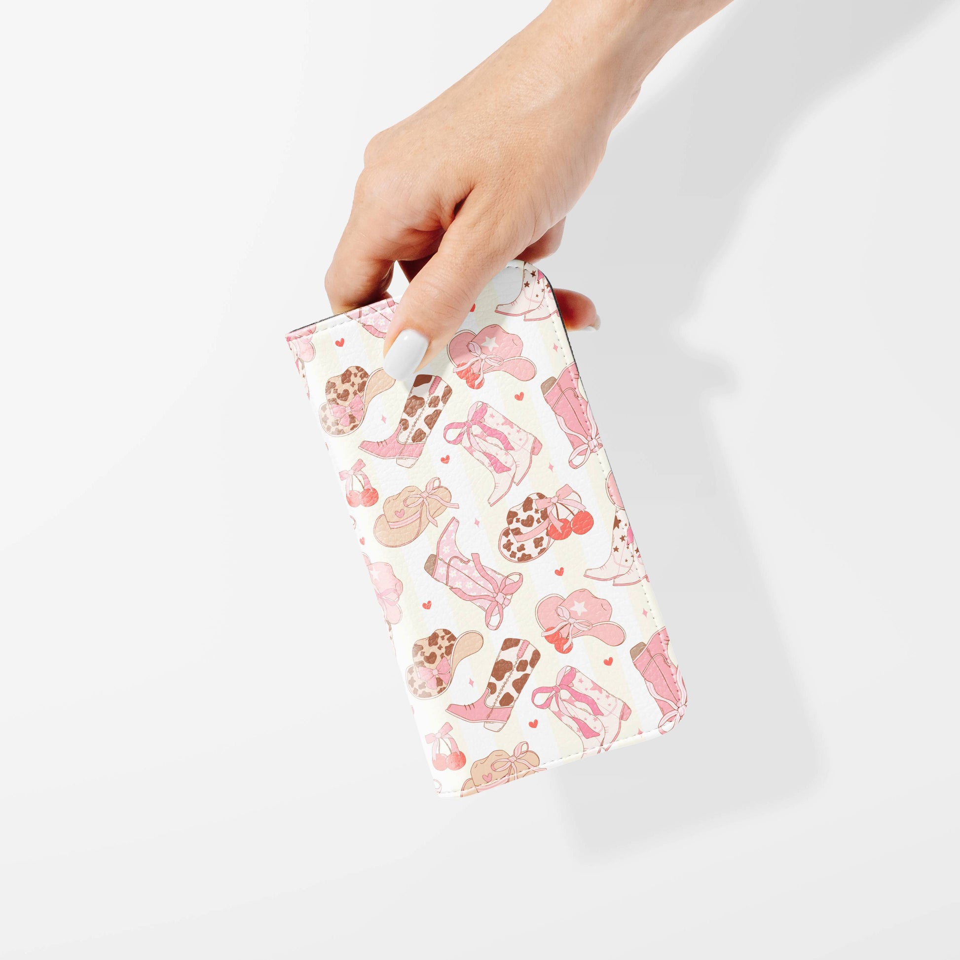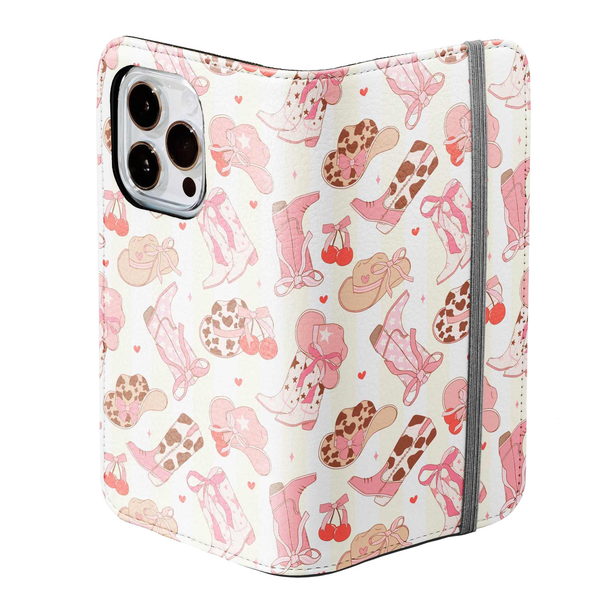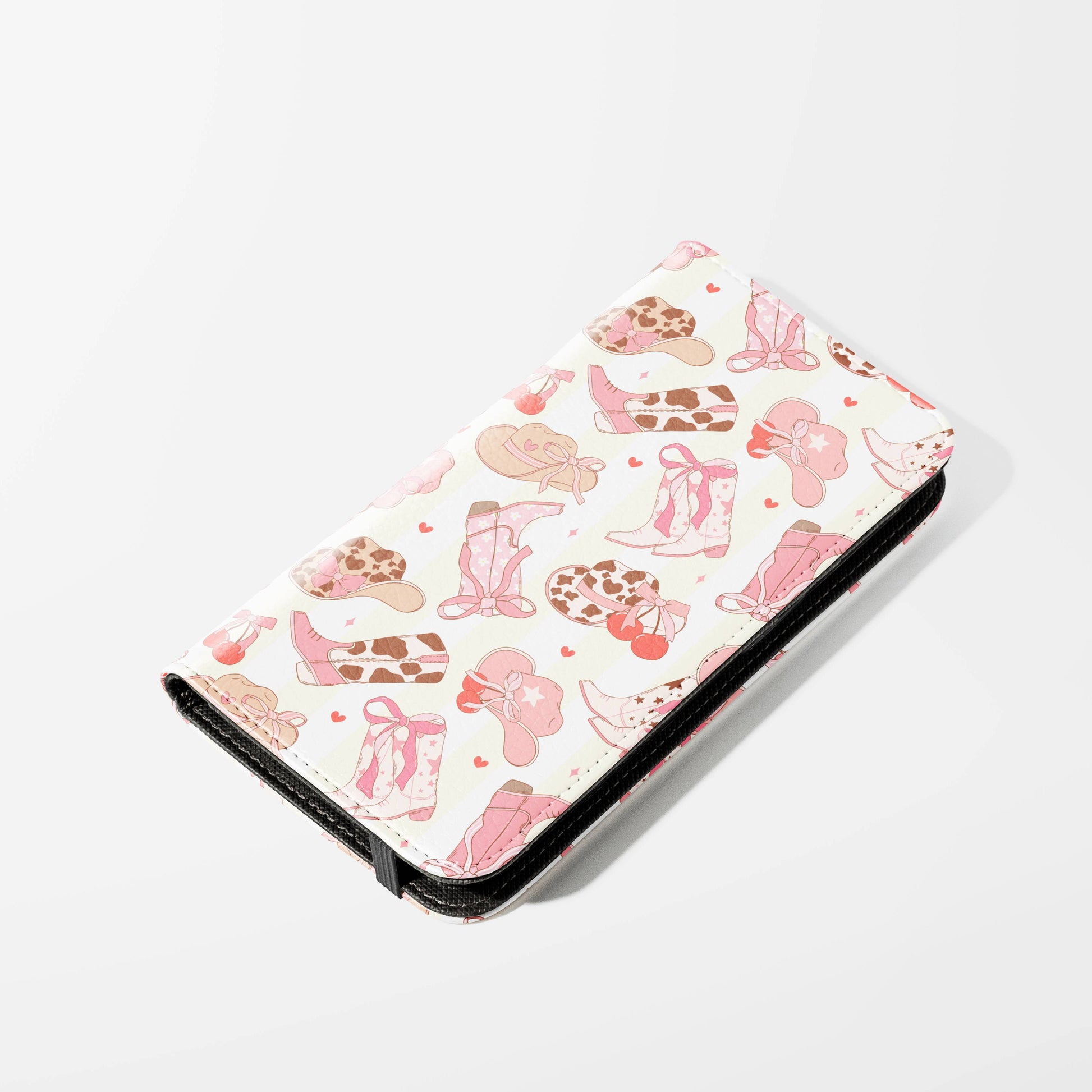 Kick your phone’s style up a notch with our vegan leather folio case! It’s got bold designs, a tough polycarbonate core, and a stretchy strap to keep it snug. Stash cards and cash, pop it up for videos, and clip on a strap for easy carrying!