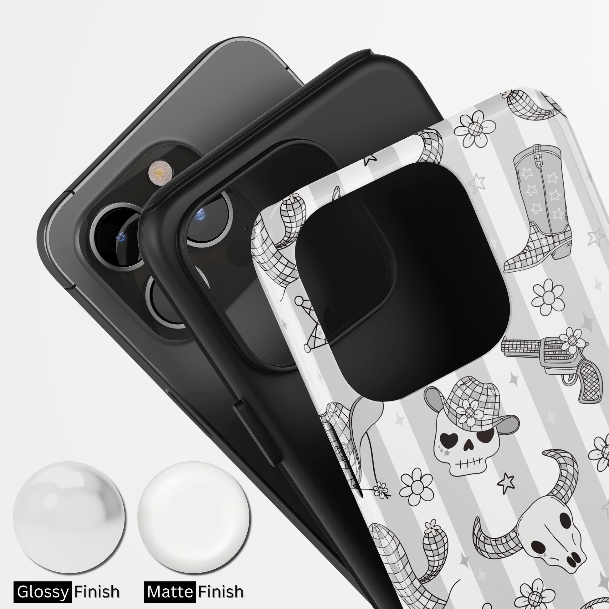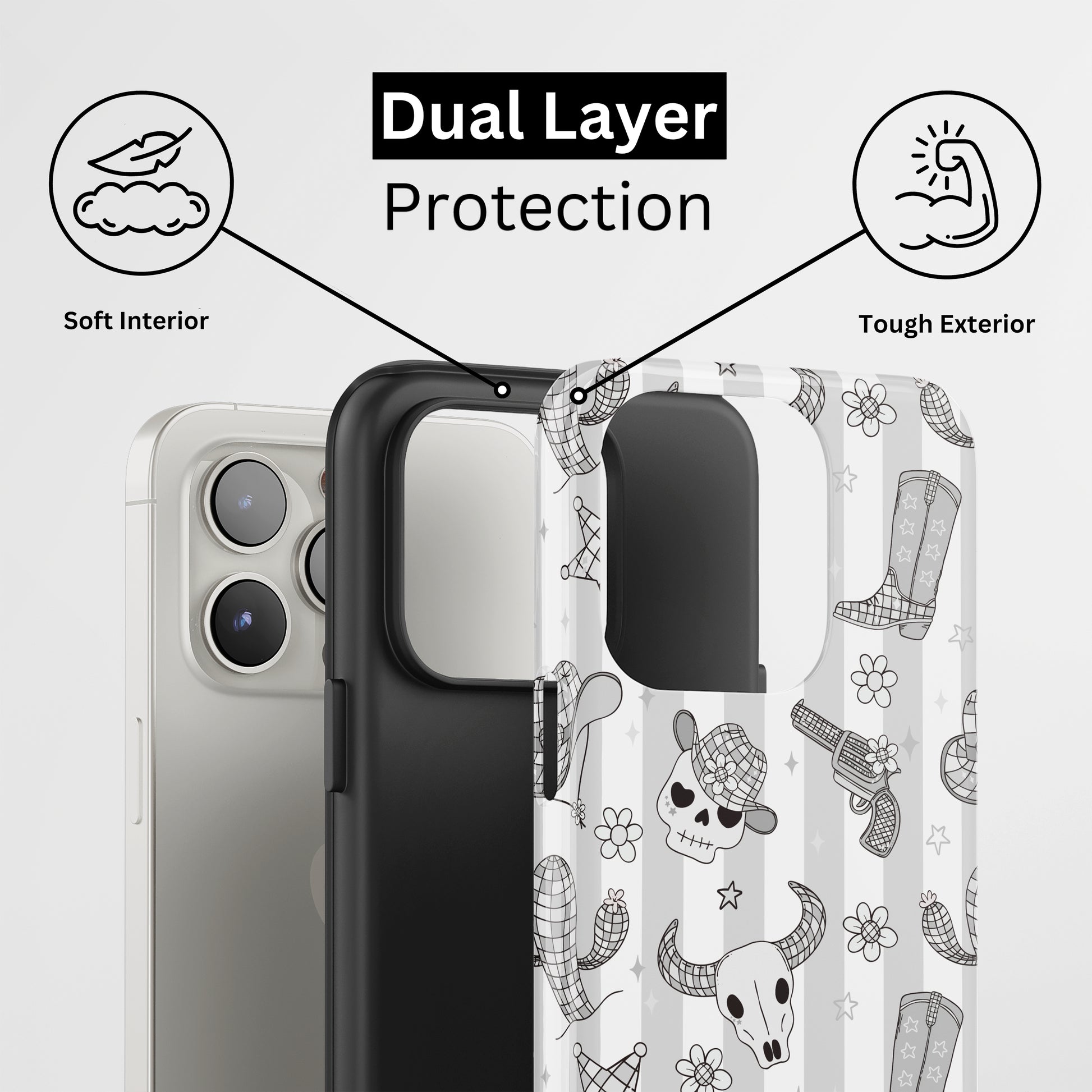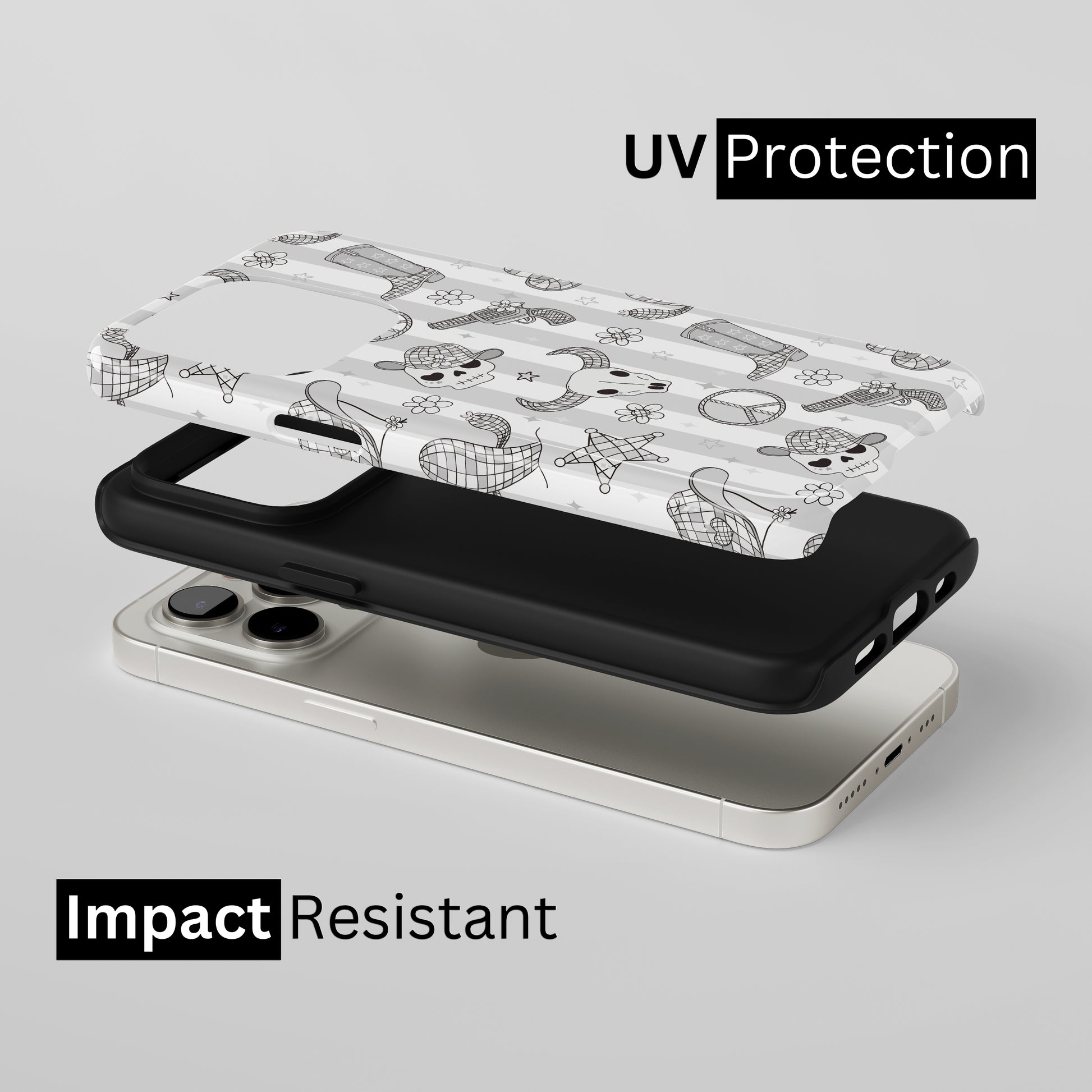 Protect your phone with a dual-layer case made for and compatible with iPhone devices. Durable, shock-absorbing, UV-protected, and wireless charging compatible. Choose matte or glossy with full-wrap 3D print and clear, open ports for easy access.