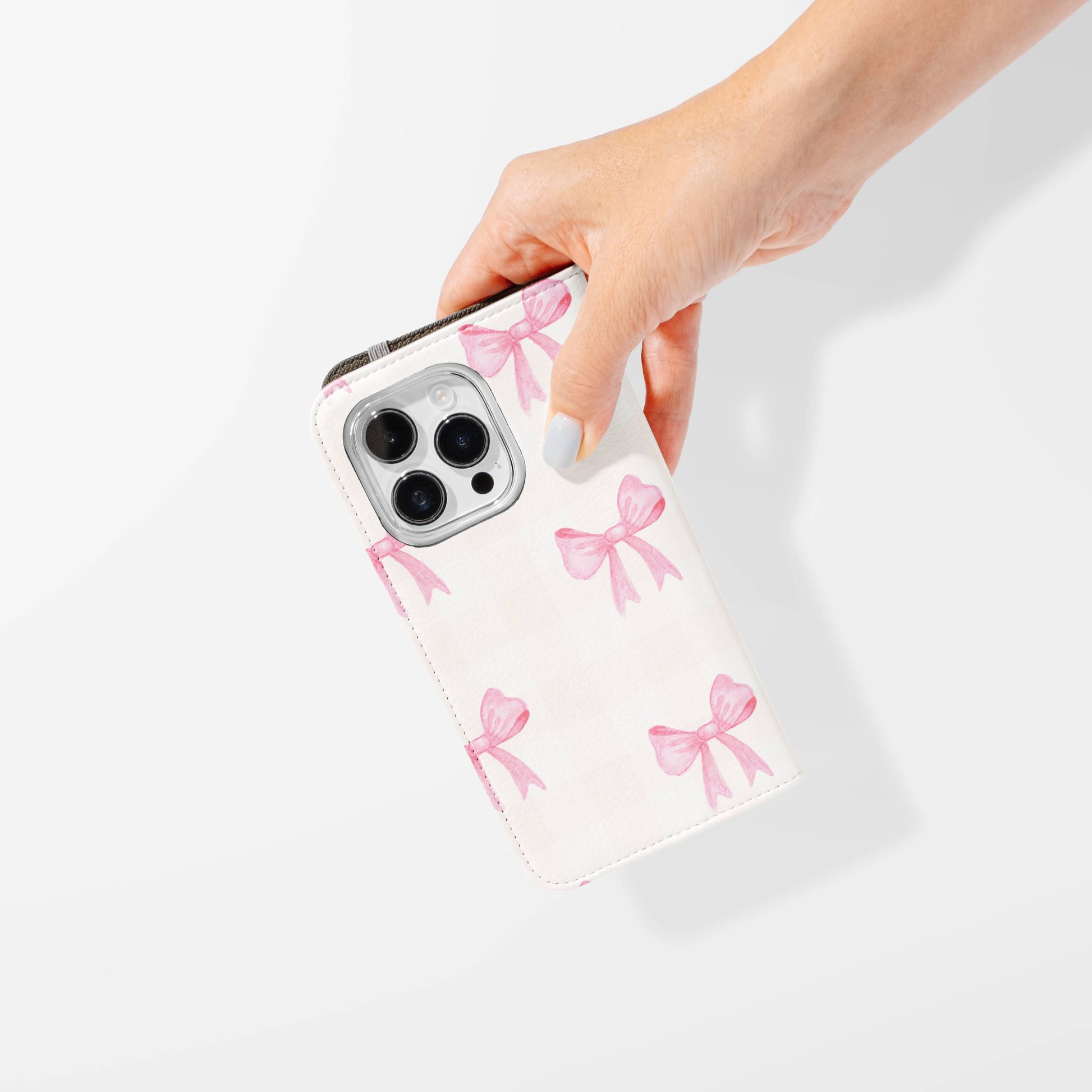 Kick your phone’s style up a notch with our vegan leather folio case! It’s got bold designs, a tough polycarbonate core, and a stretchy strap to keep it snug. Stash cards and cash, pop it up for videos, and clip on a strap for easy carrying!