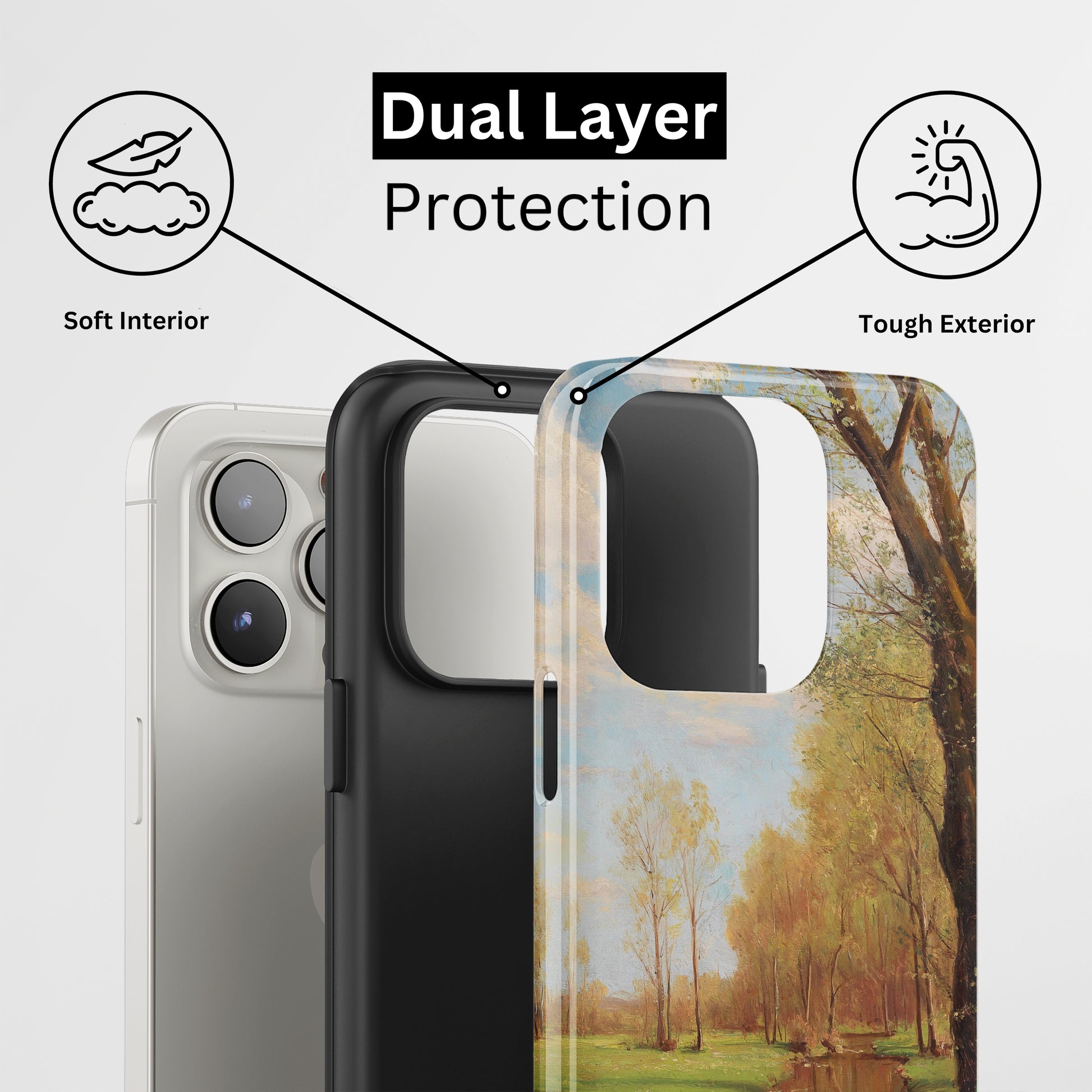 Protect your phone with a dual-layer case made for and compatible with iPhone devices. Durable, shock-absorbing, UV-protected, and wireless charging compatible. Choose matte or glossy with full-wrap 3D print and clear, open ports for easy access.