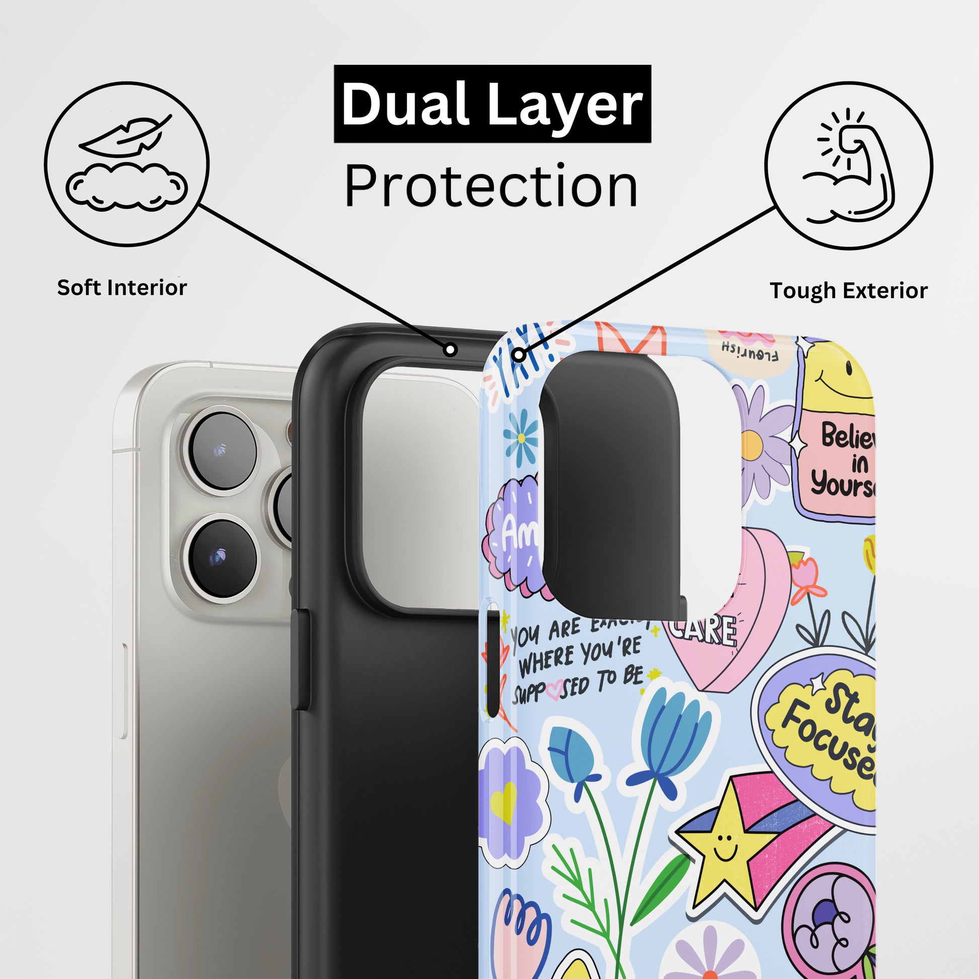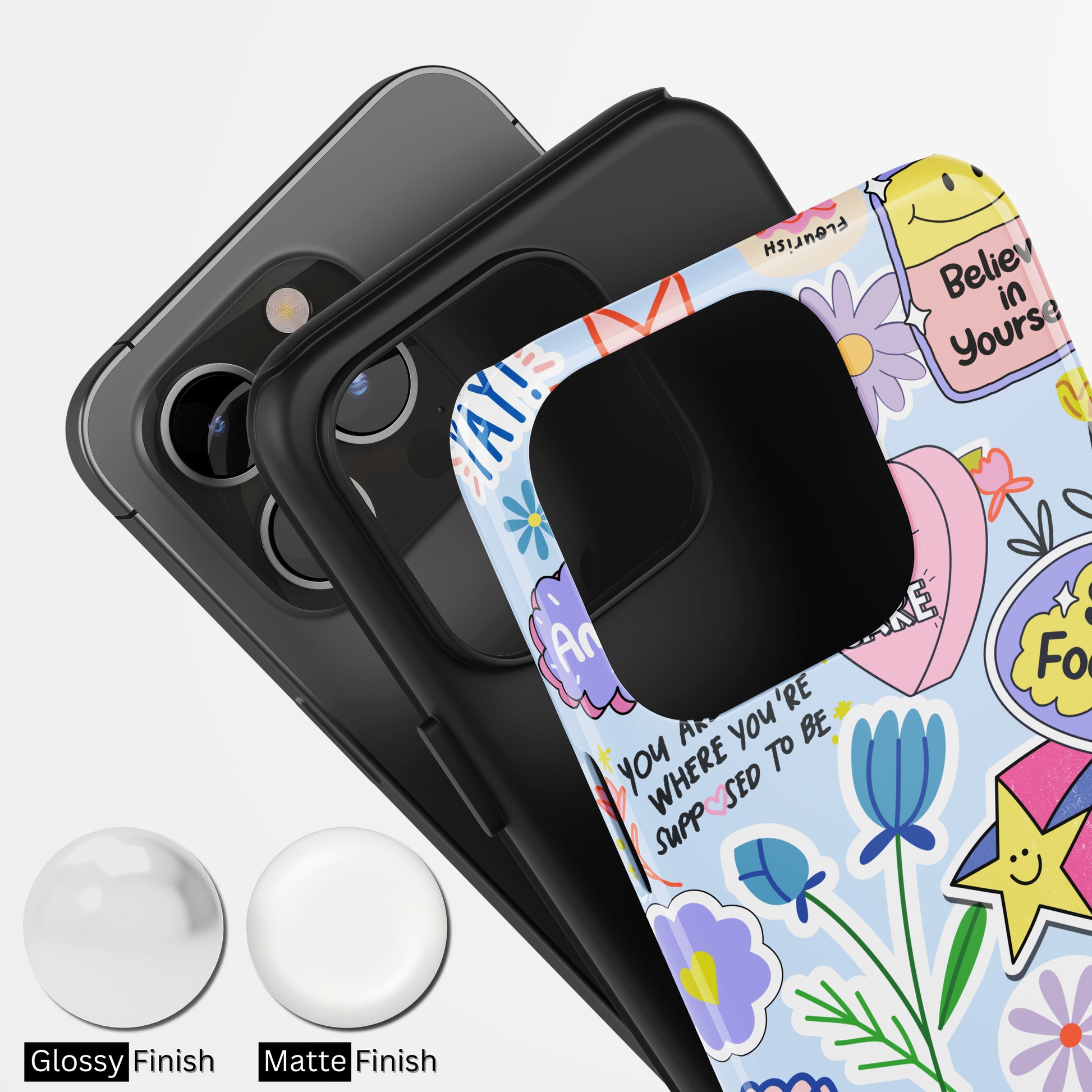 Protect your phone with a dual-layer case made for and compatible with iPhone devices. Durable, shock-absorbing, UV-protected, and wireless charging compatible. Choose matte or glossy with full-wrap 3D print and clear, open ports for easy access.