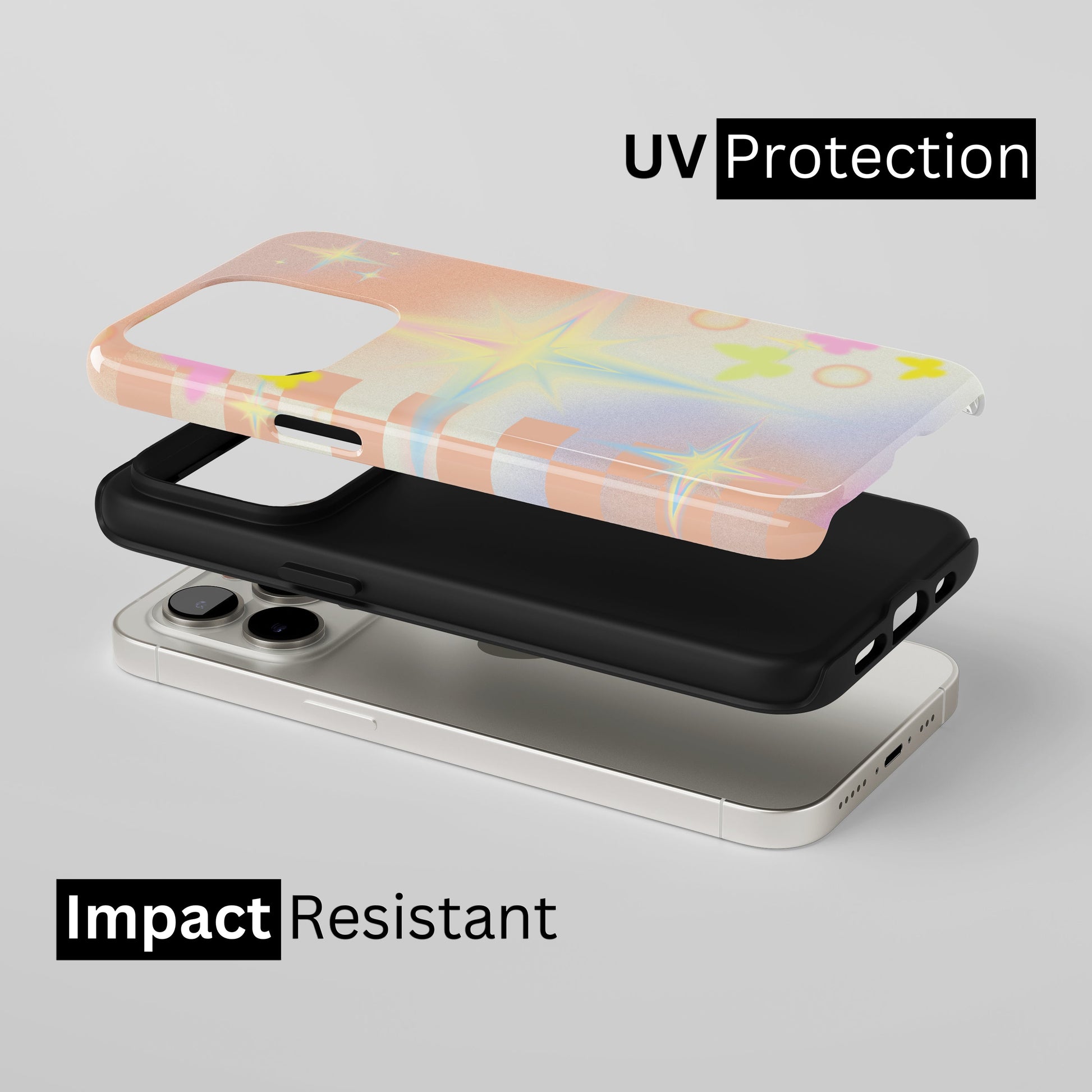 Protect your phone with a dual-layer case made for and compatible with Samsung Galaxy/Note devices. Durable, shock-absorbing, UV-protected, and wireless charging compatible. Choose matte or glossy with full-wrap 3D print and clear, open ports for easy access.