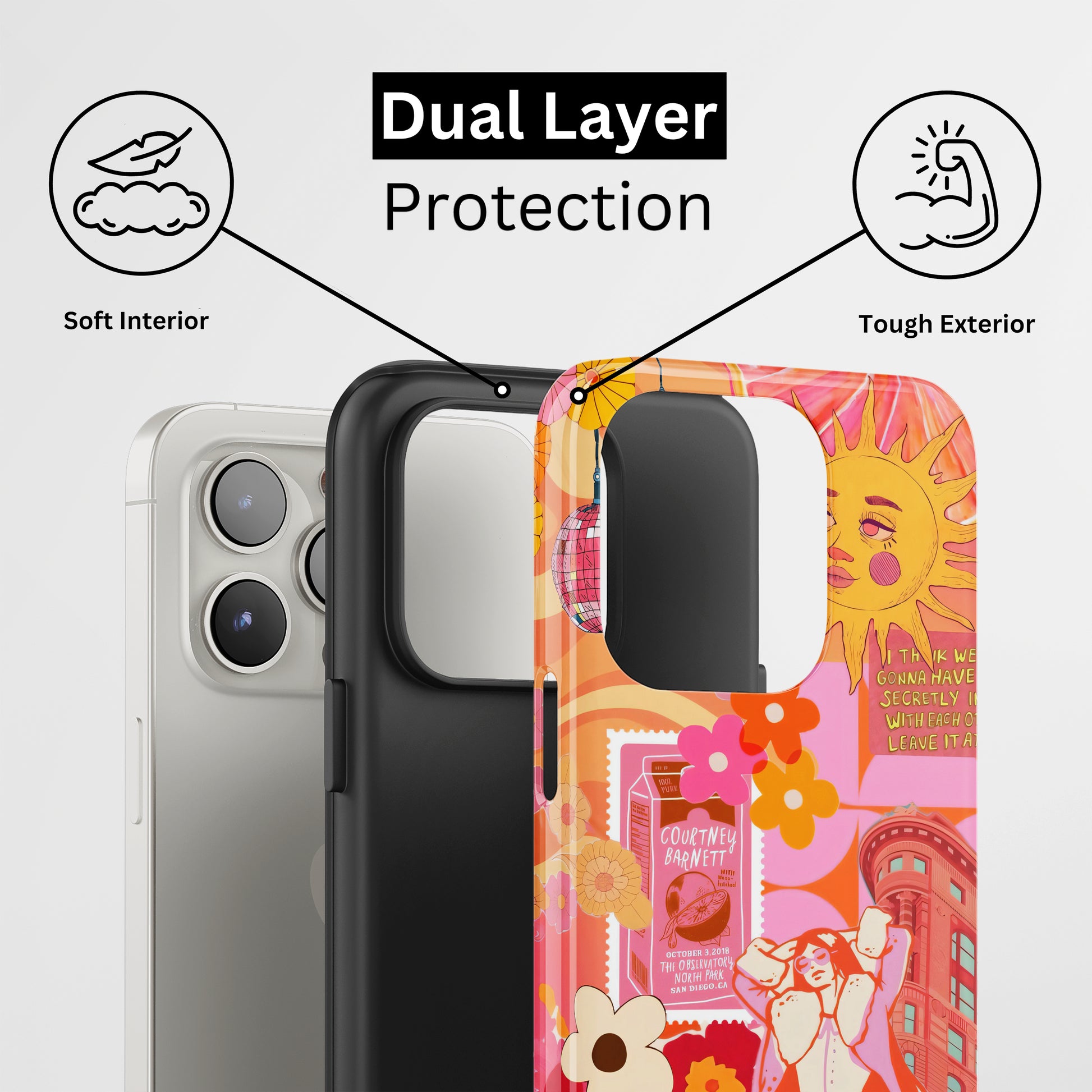Protect your phone with a dual-layer case made for and compatible with iPhone devices. Durable, shock-absorbing, UV-protected, and wireless charging compatible. Choose matte or glossy with full-wrap 3D print and clear, open ports for easy access.
