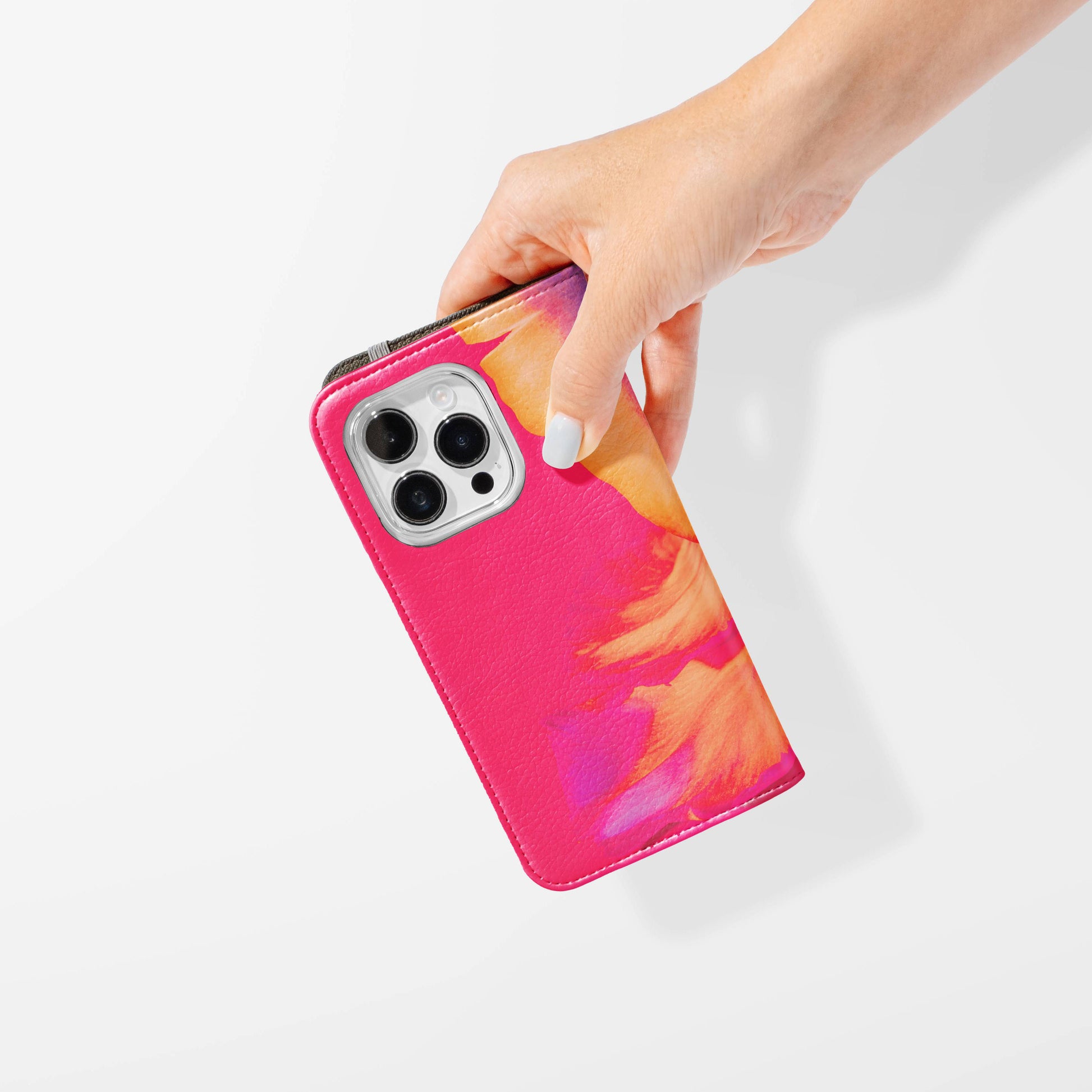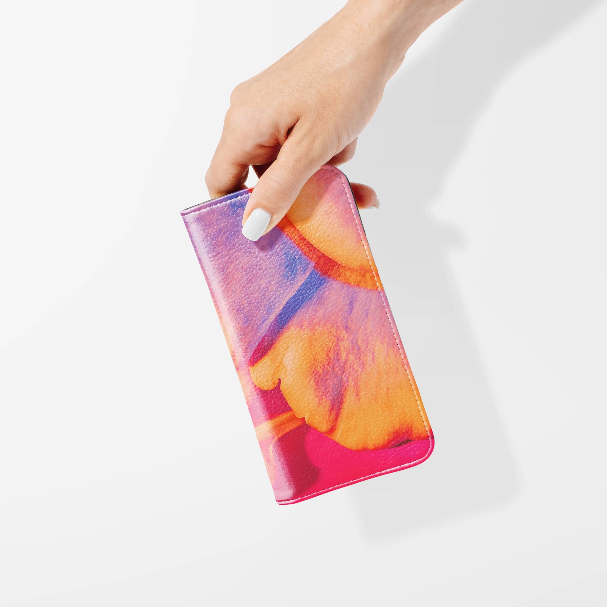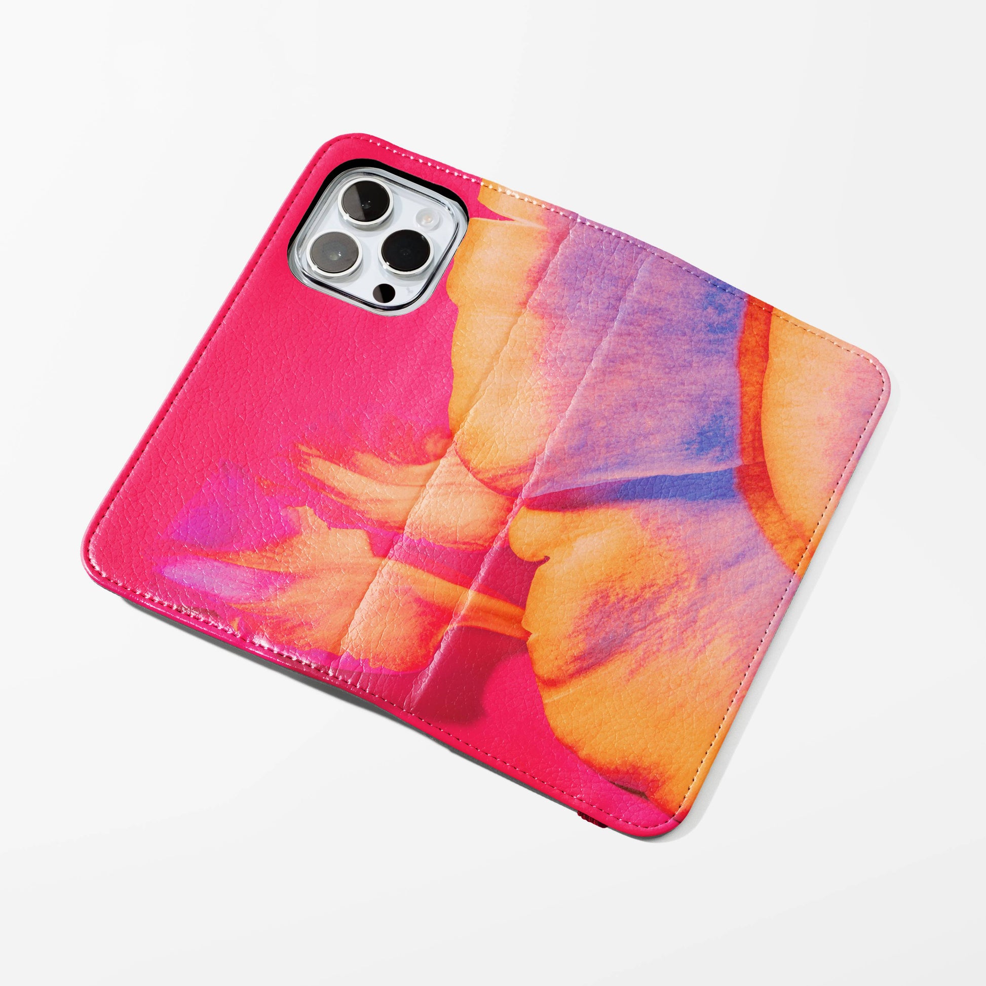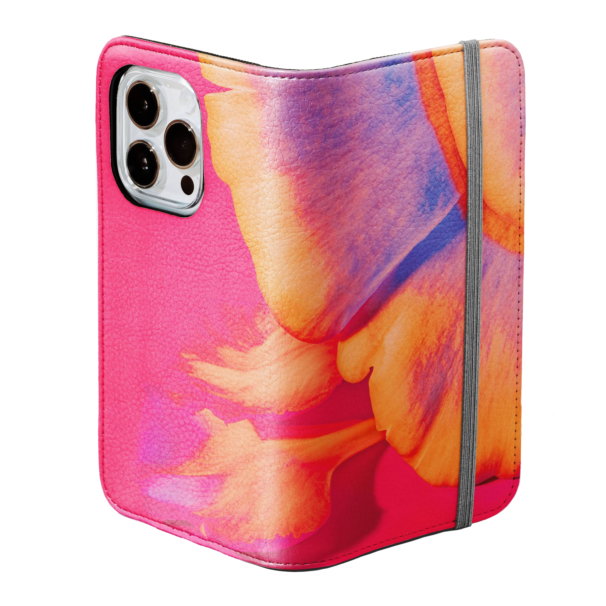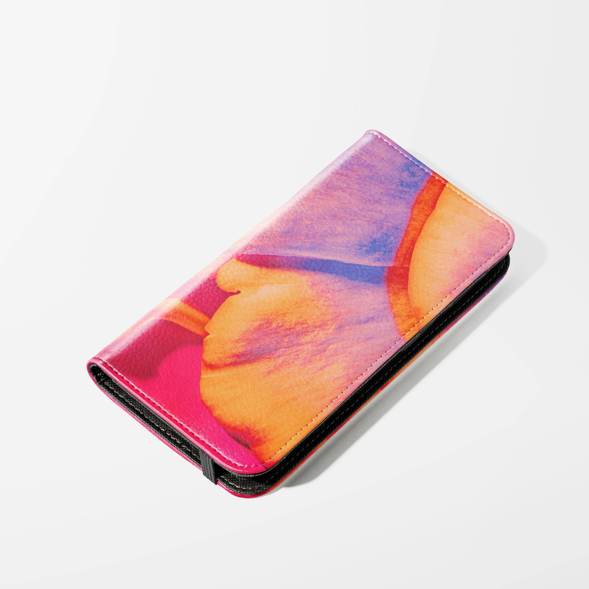 Kick your phone’s style up a notch with our vegan leather folio case! It’s got bold designs, a tough polycarbonate core, and a stretchy strap to keep it snug. Stash cards and cash, pop it up for videos, and clip on a strap for easy carrying!