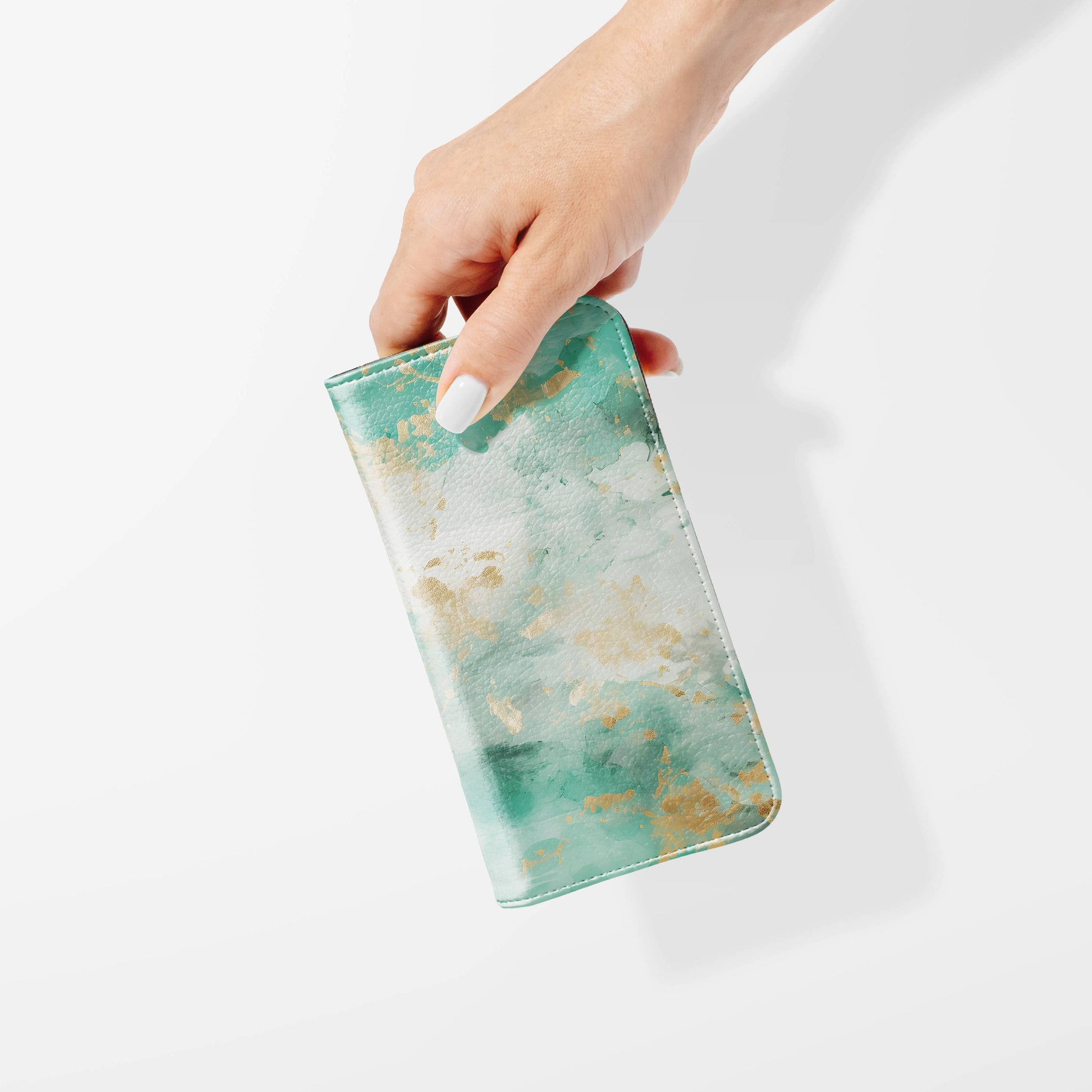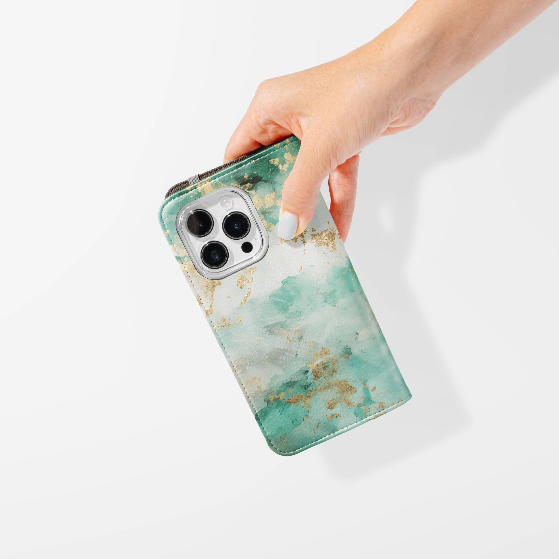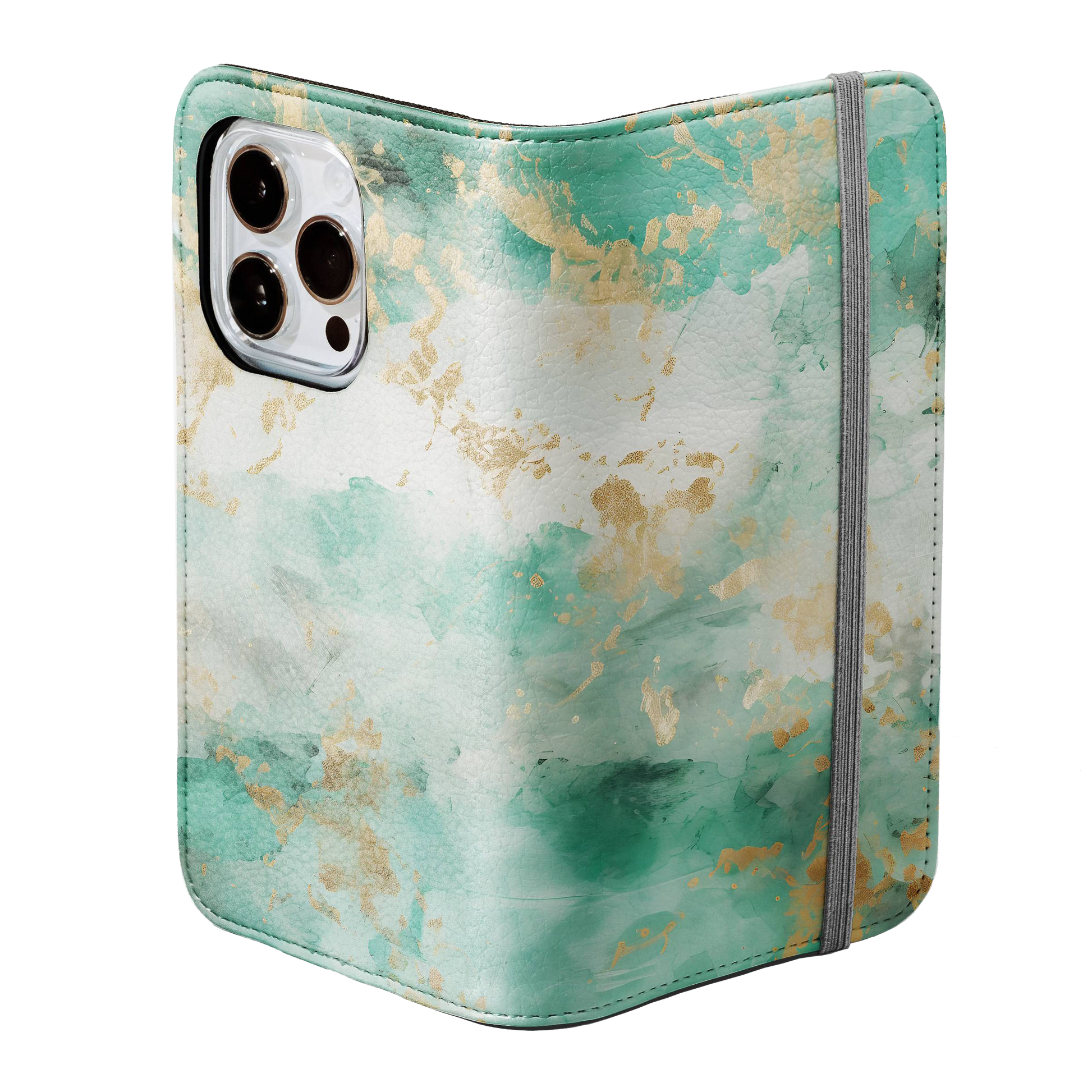 Kick your phone’s style up a notch with our vegan leather folio case! It’s got bold designs, a tough polycarbonate core, and a stretchy strap to keep it snug. Stash cards and cash, pop it up for videos, and clip on a strap for easy carrying!