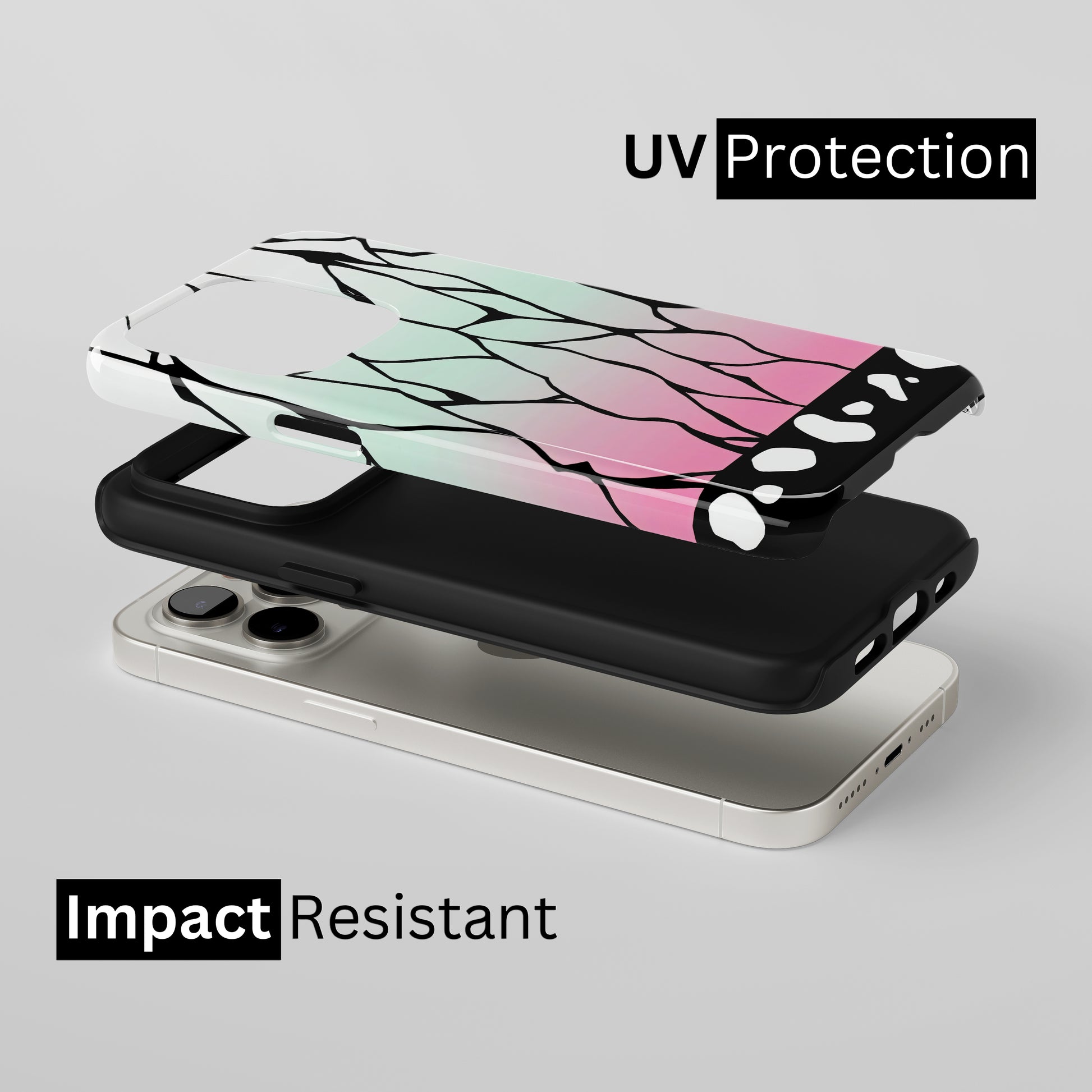 Protect your phone with a dual-layer case made for and compatible with iPhone devices. Durable, shock-absorbing, UV-protected, and wireless charging compatible. Choose matte or glossy with full-wrap 3D print and clear, open ports for easy access.