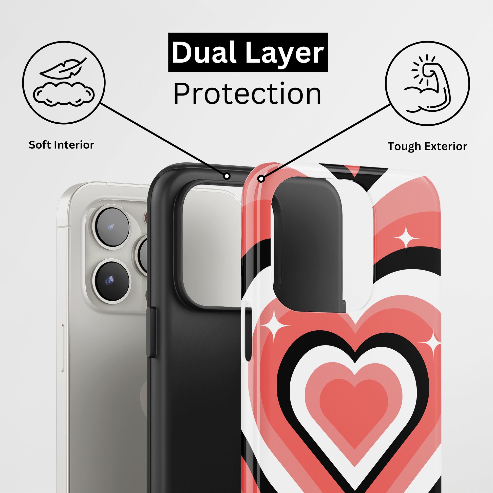 Protect your phone with a dual-layer case made for and compatible with iPhone devices. Durable, shock-absorbing, UV-protected, and wireless charging compatible. Choose matte or glossy with full-wrap 3D print and clear, open ports for easy access.
