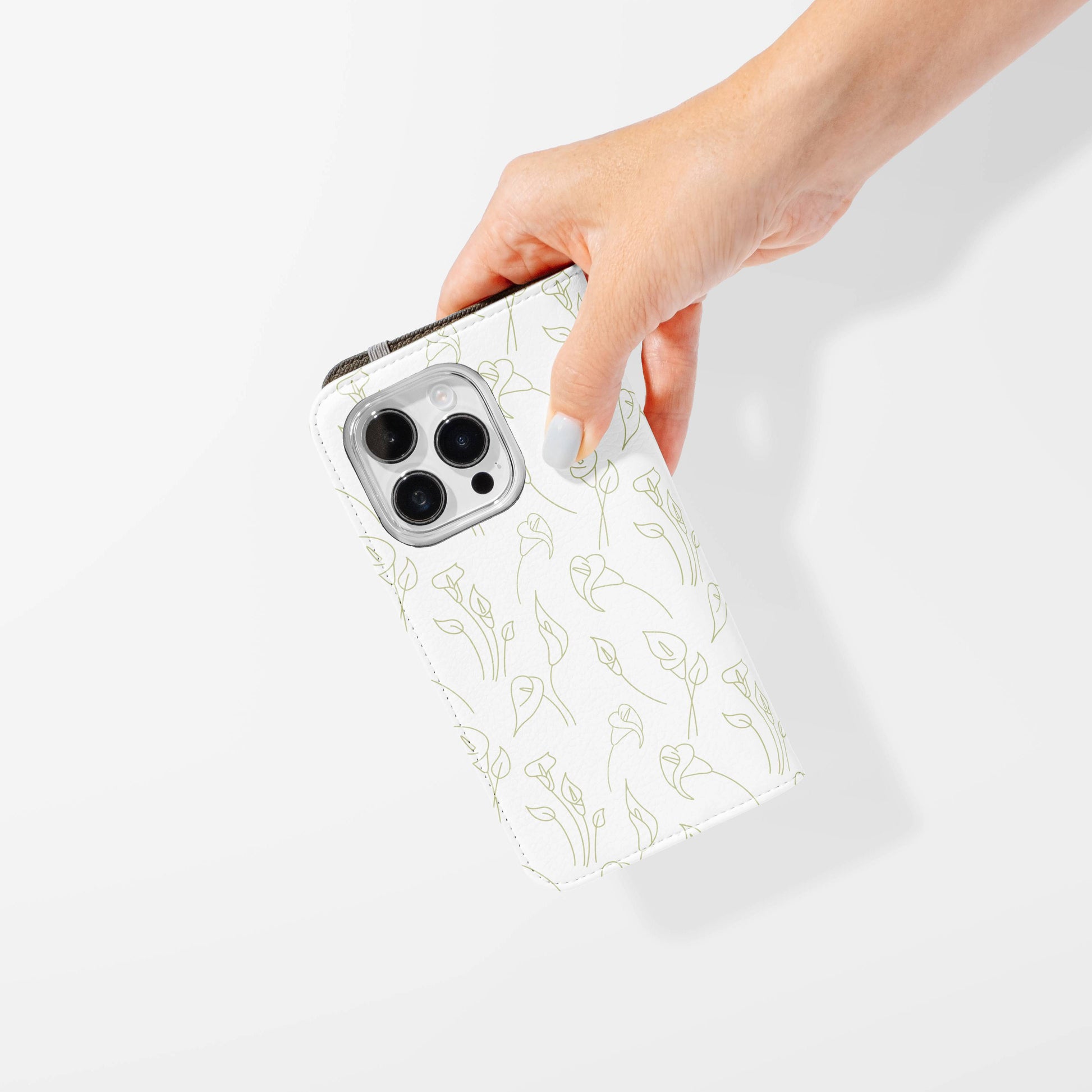 Kick your phone’s style up a notch with our vegan leather folio case! It’s got bold designs, a tough polycarbonate core, and a stretchy strap to keep it snug. Stash cards and cash, pop it up for videos, and clip on a strap for easy carrying!