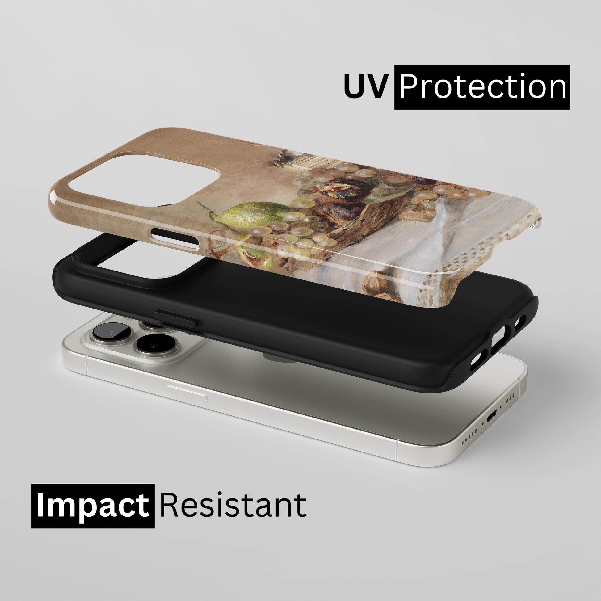 Protect your phone with a dual-layer case made for and compatible with iPhone devices. Durable, shock-absorbing, UV-protected, and wireless charging compatible. Choose matte or glossy with full-wrap 3D print and clear, open ports for easy access.