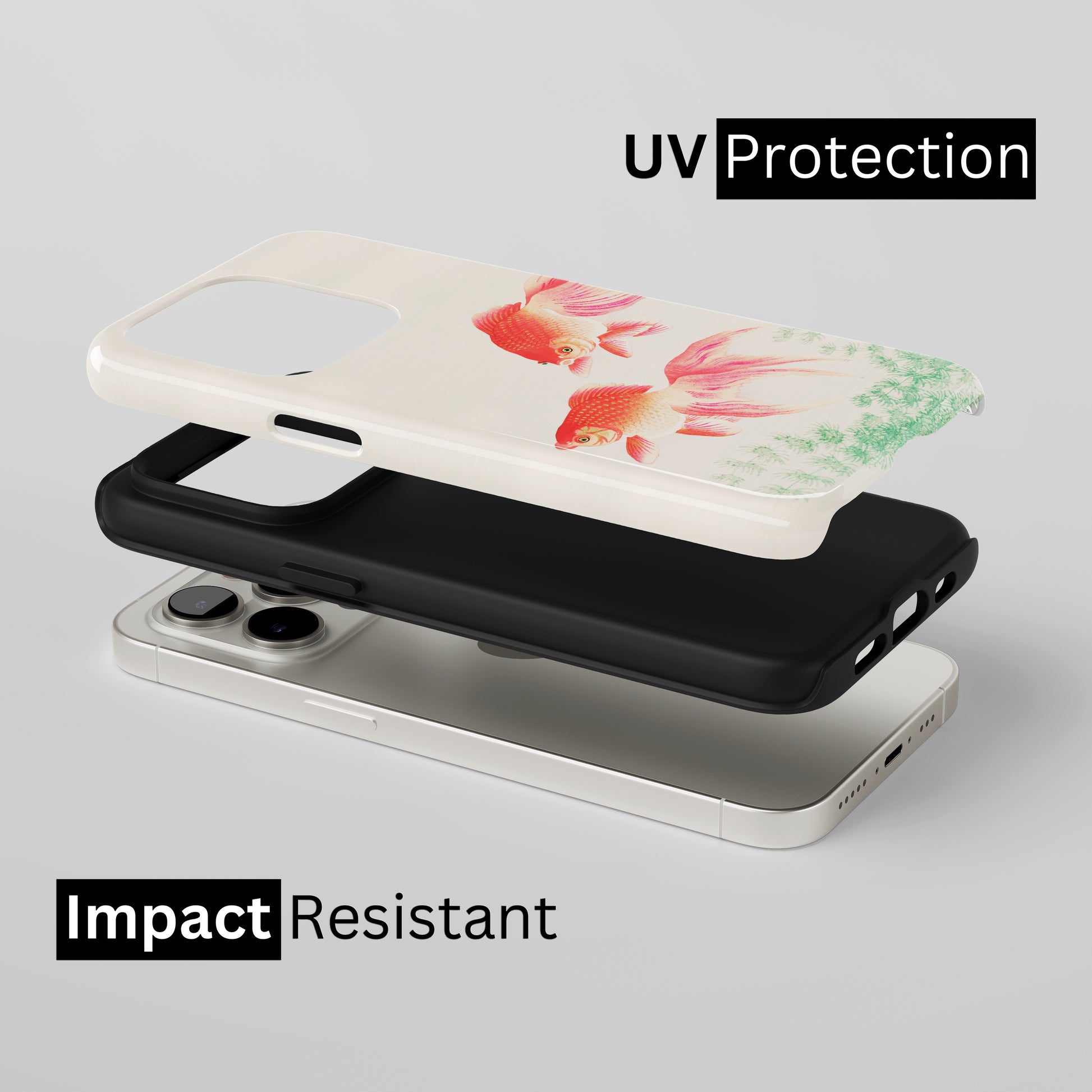 Protect your phone with a dual-layer case made for and compatible with iPhone devices. Durable, shock-absorbing, UV-protected, and wireless charging compatible. Choose matte or glossy with full-wrap 3D print and clear, open ports for easy access.