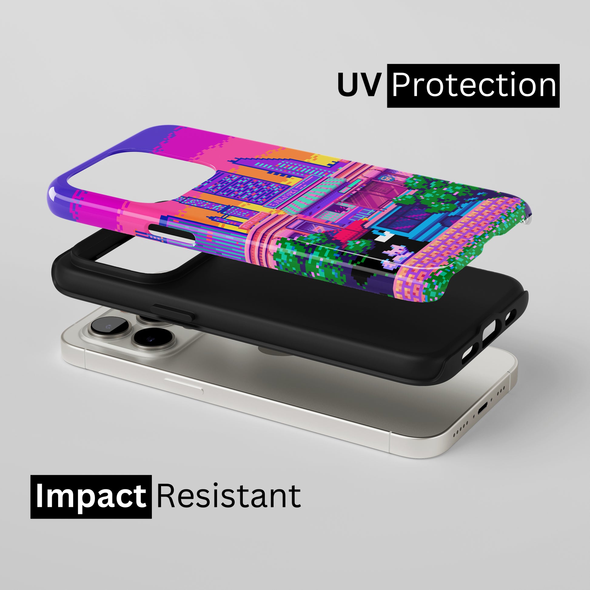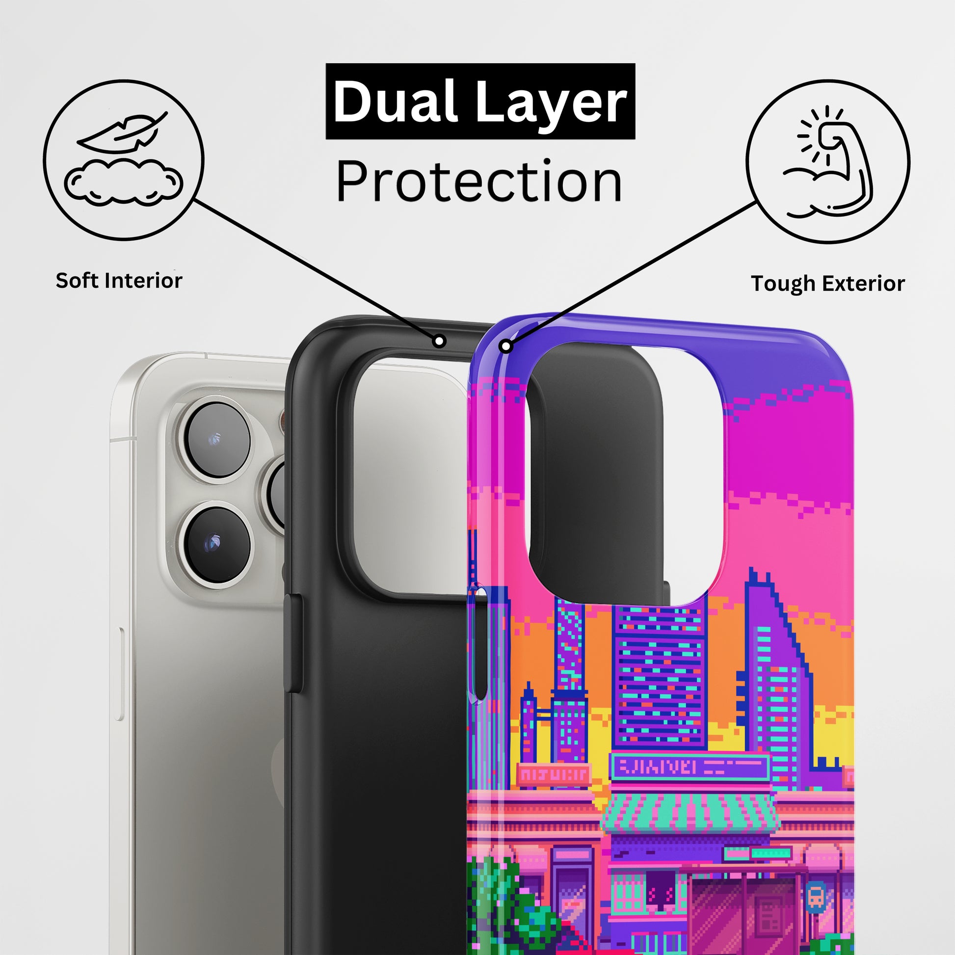 Protect your phone with a dual-layer case made for and compatible with iPhone devices. Durable, shock-absorbing, UV-protected, and wireless charging compatible. Choose matte or glossy with full-wrap 3D print and clear, open ports for easy access.