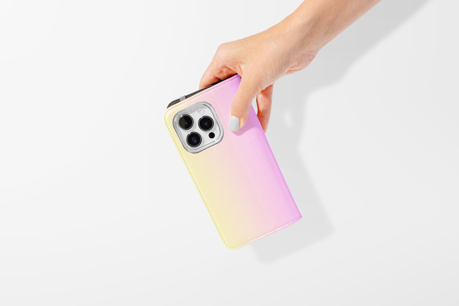 Kick your phone’s style up a notch with our vegan leather folio case! It’s got bold designs, a tough polycarbonate core, and a stretchy strap to keep it snug. Stash cards and cash, pop it up for videos, and clip on a strap for easy carrying!