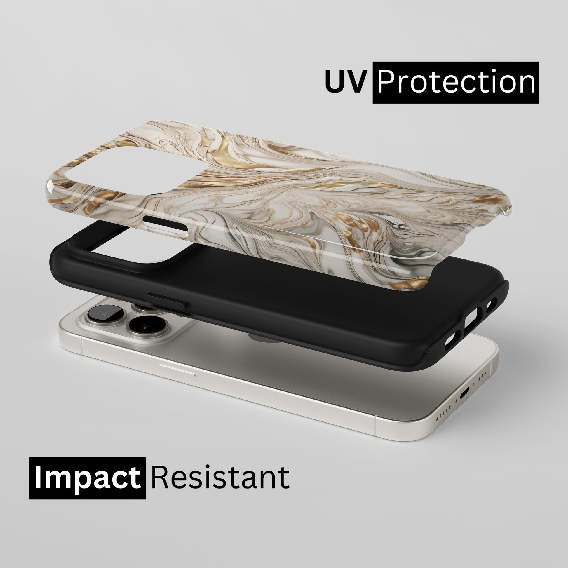 Protect your phone with a dual-layer case made for and compatible with iPhone devices. Durable, shock-absorbing, UV-protected, and wireless charging compatible. Choose matte or glossy with full-wrap 3D print and clear, open ports for easy access.