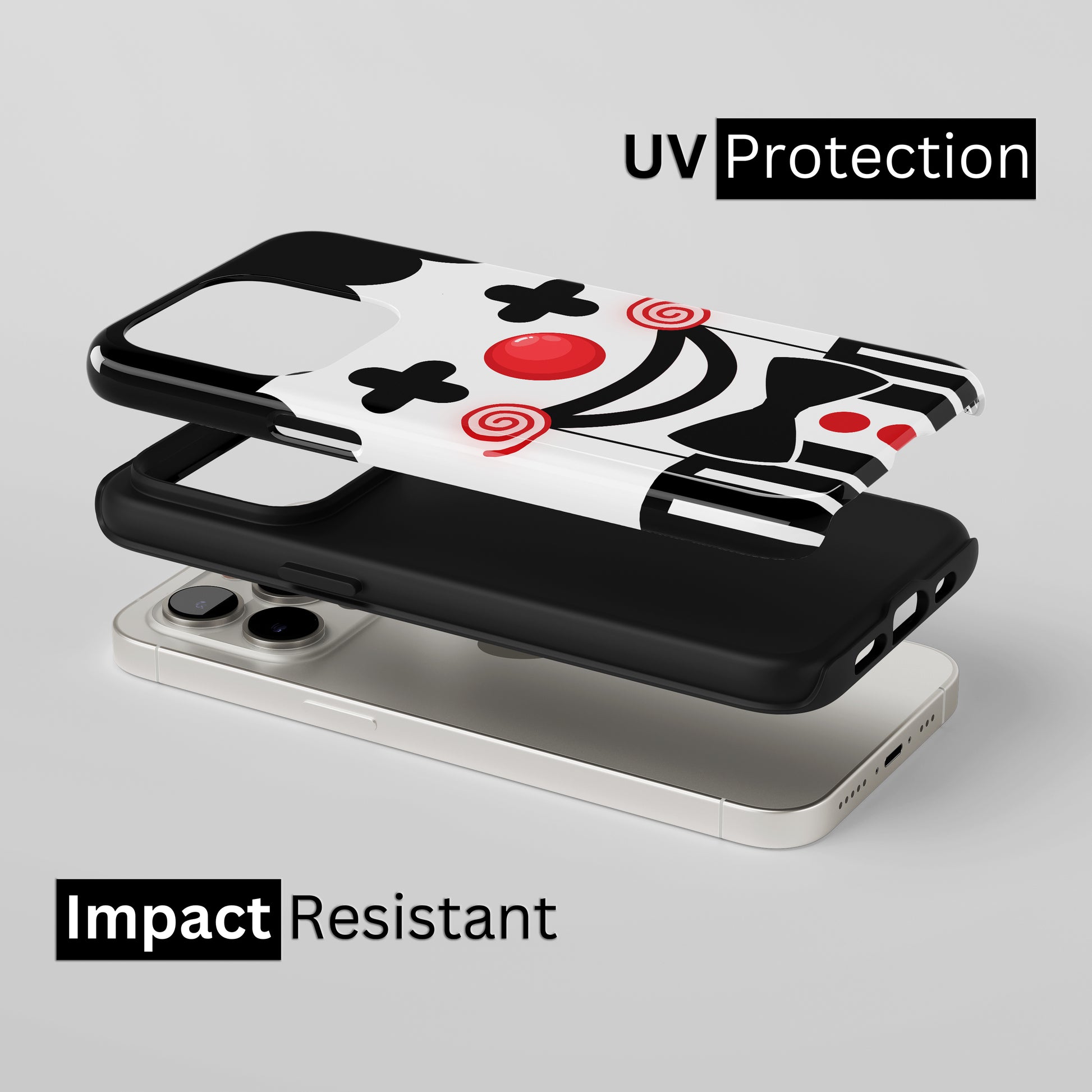 Protect your phone with a dual-layer case made for and compatible with iPhone devices. Durable, shock-absorbing, UV-protected, and wireless charging compatible. Choose matte or glossy with full-wrap 3D print and clear, open ports for easy access.