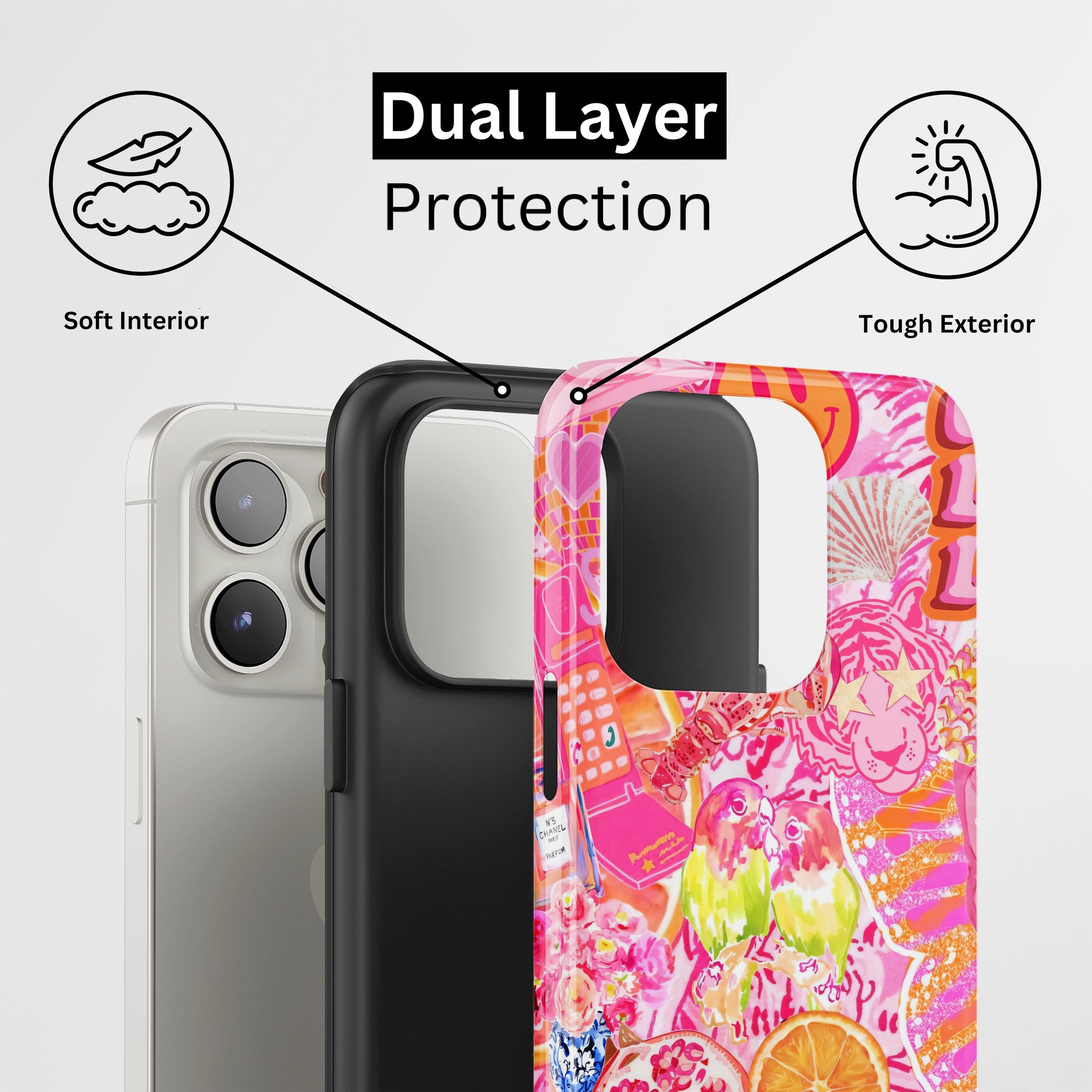 Protect your phone with a dual-layer case made for and compatible with Samsung Galaxy/Note devices. Durable, shock-absorbing, UV-protected, and wireless charging compatible. Choose matte or glossy with full-wrap 3D print and clear, open ports for easy access.