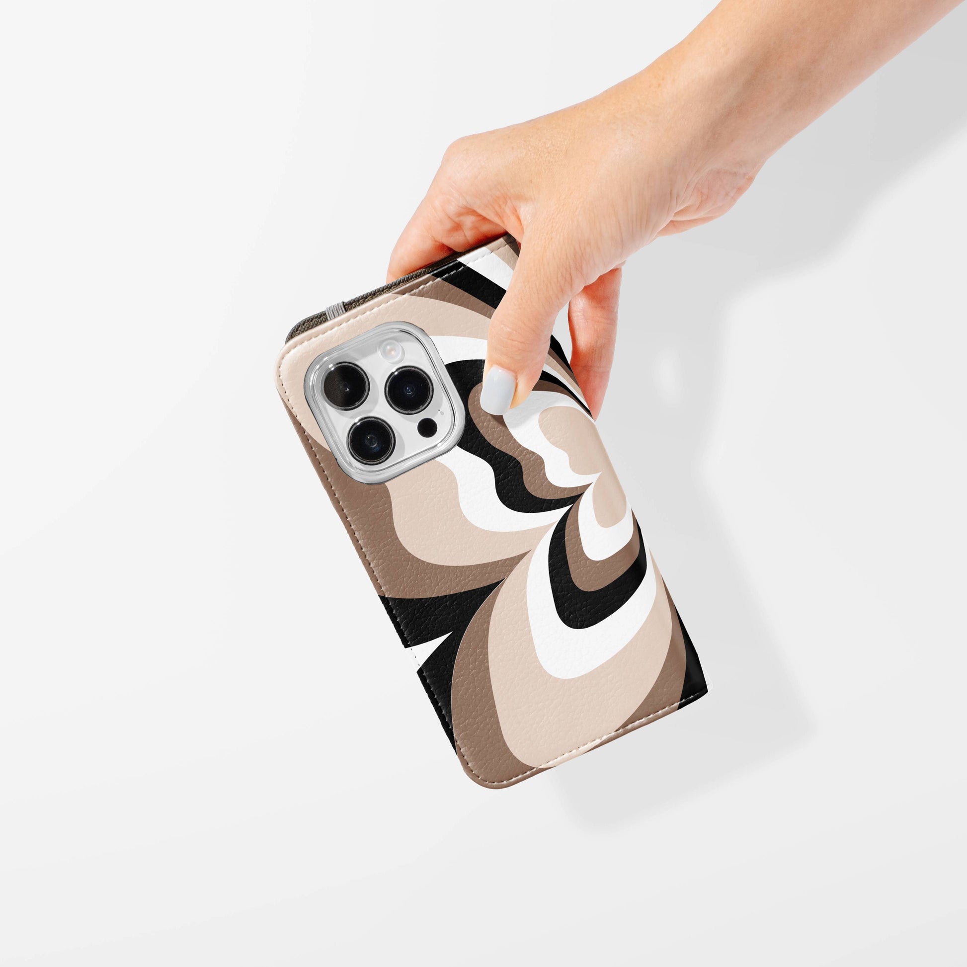 Kick your phone’s style up a notch with our vegan leather folio case! It’s got bold designs, a tough polycarbonate core, and a stretchy strap to keep it snug. Stash cards and cash, pop it up for videos, and clip on a strap for easy carrying!